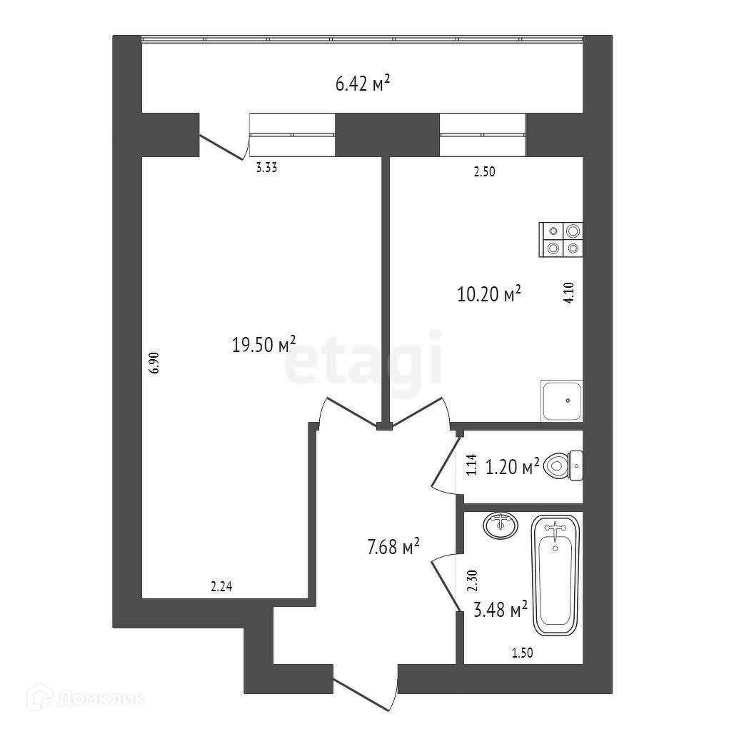 Общая площадь 42.9 м2