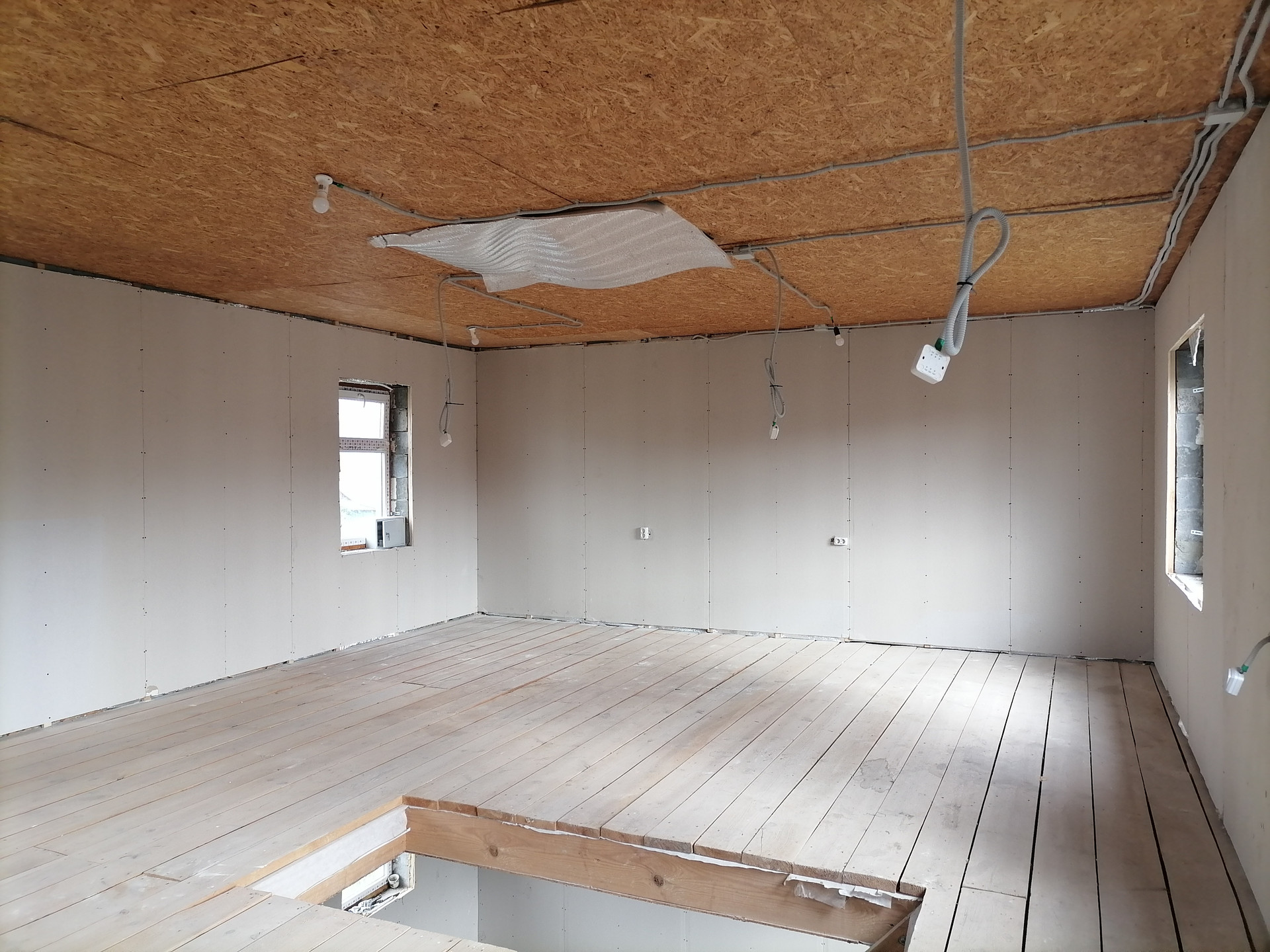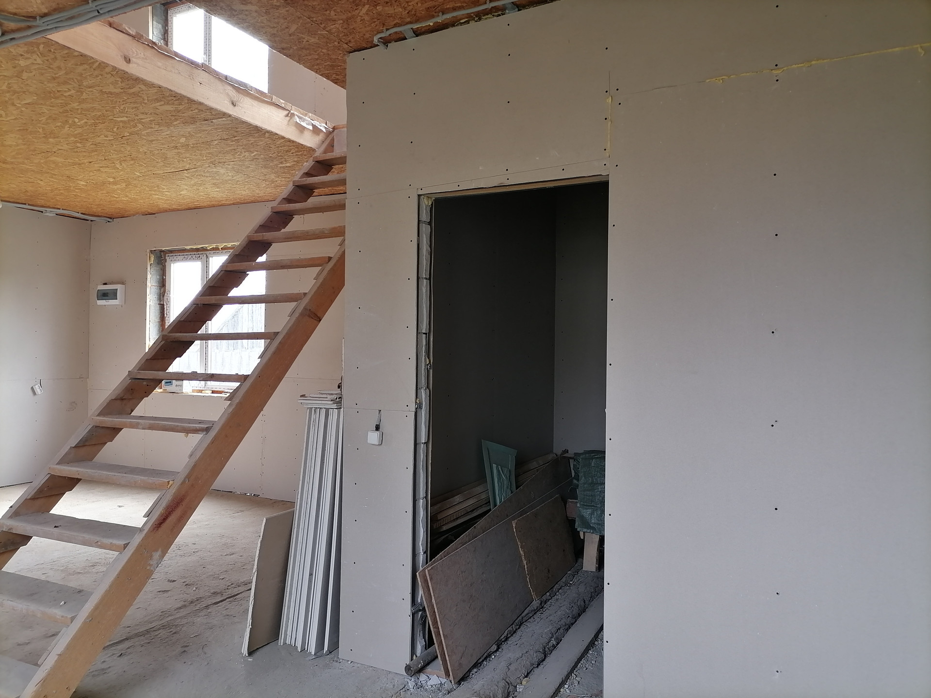 В доме частично возвели перегородки , отгорожен с/у, выведены мокрые точки.