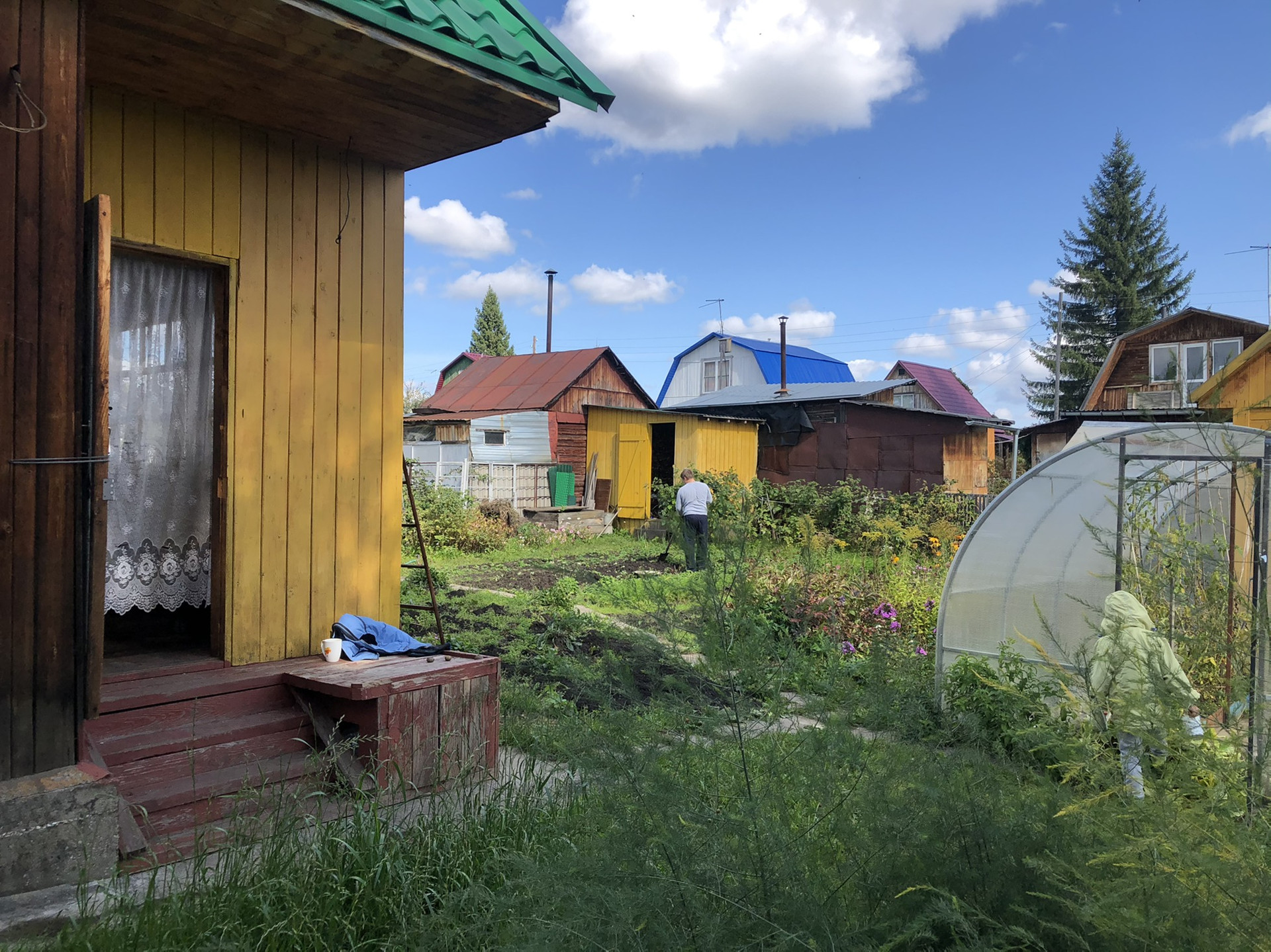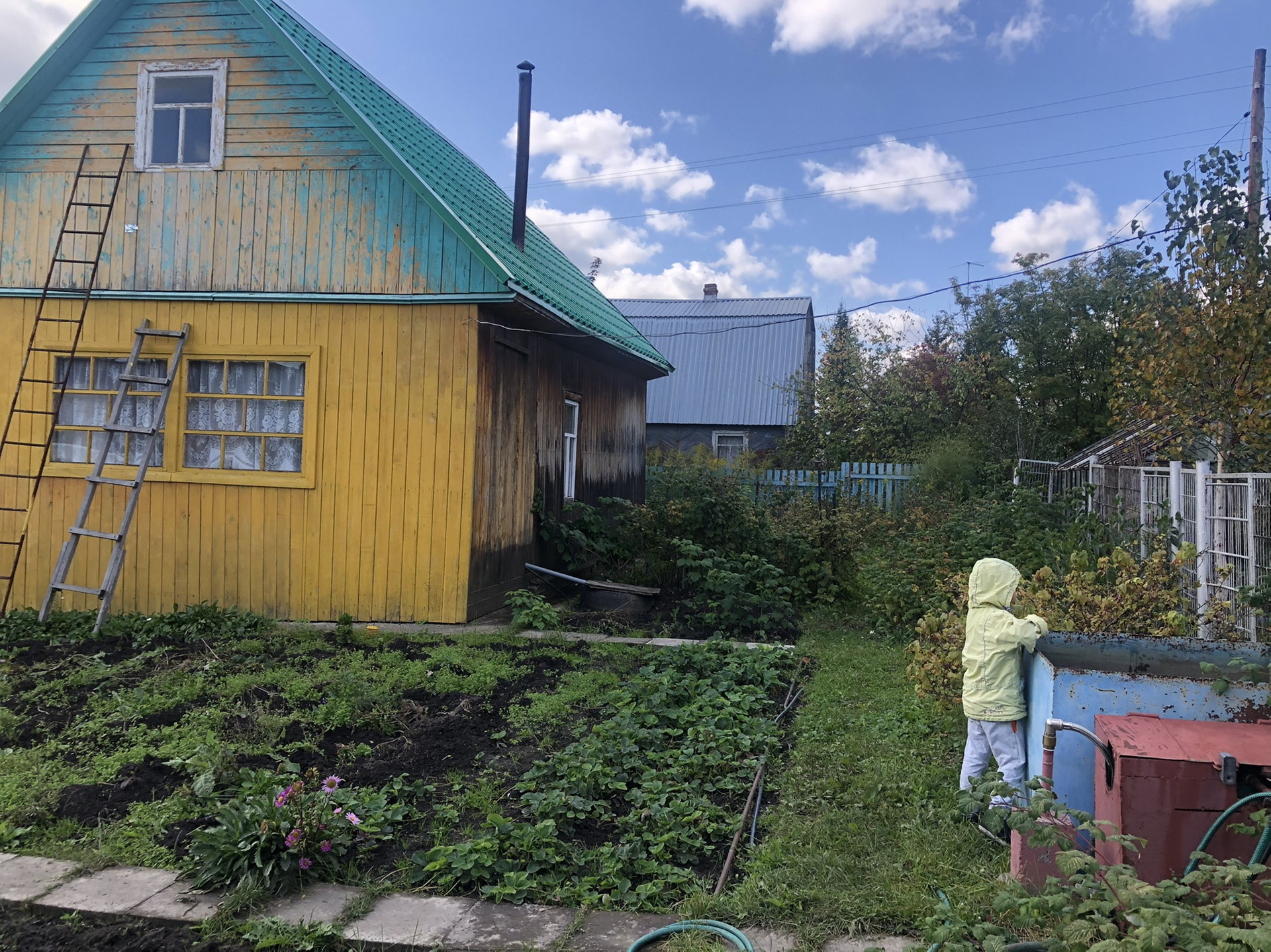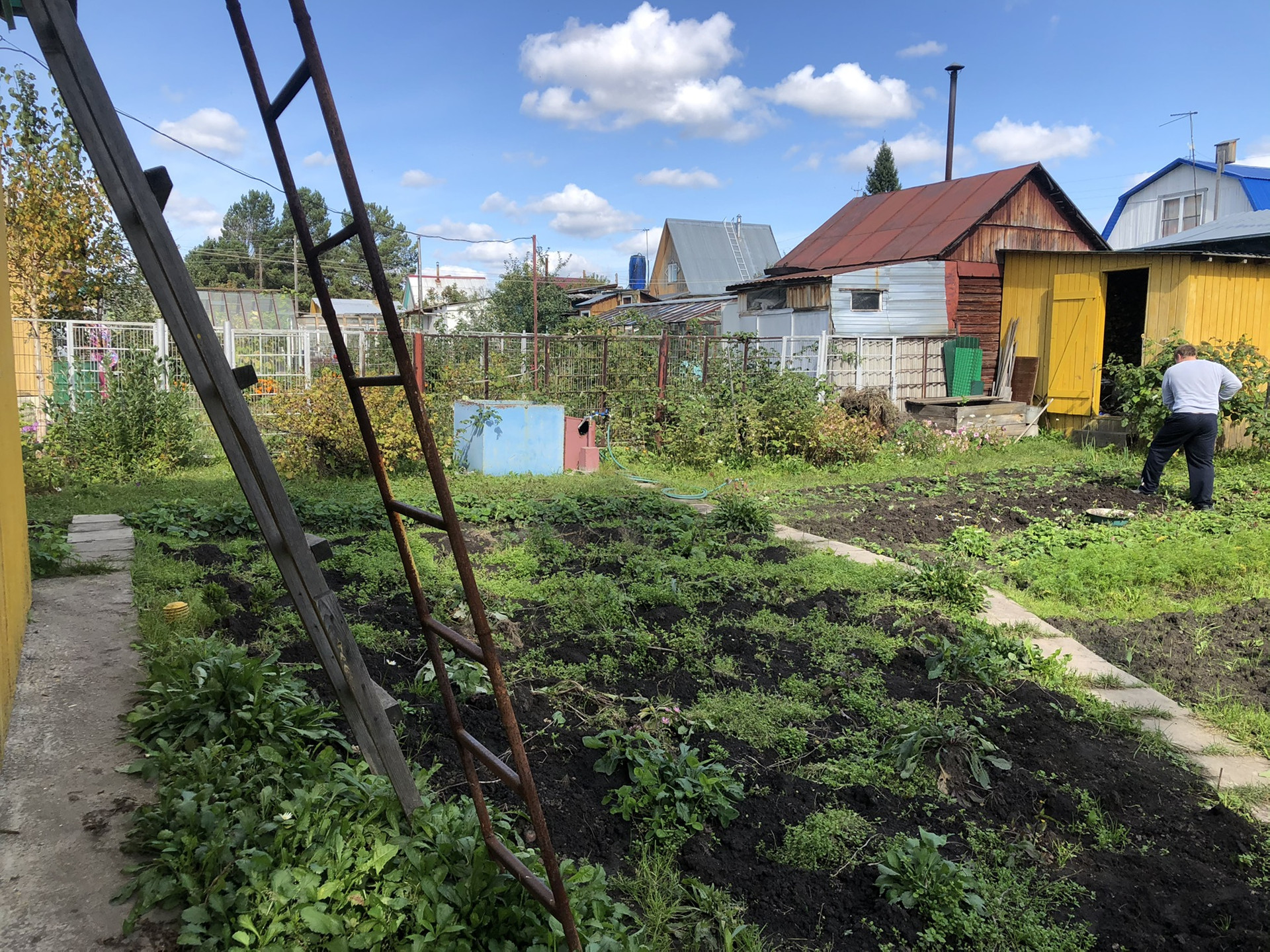 Внимание) на половине участка автоматический полив, просто открой кран, и все польётся само !