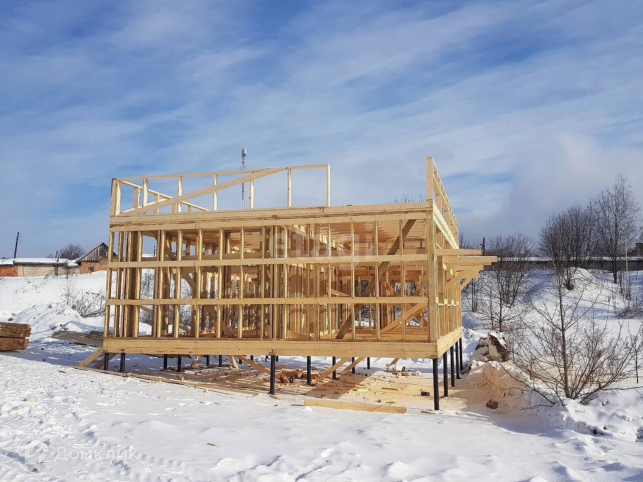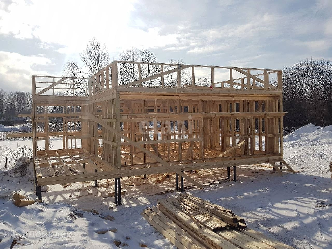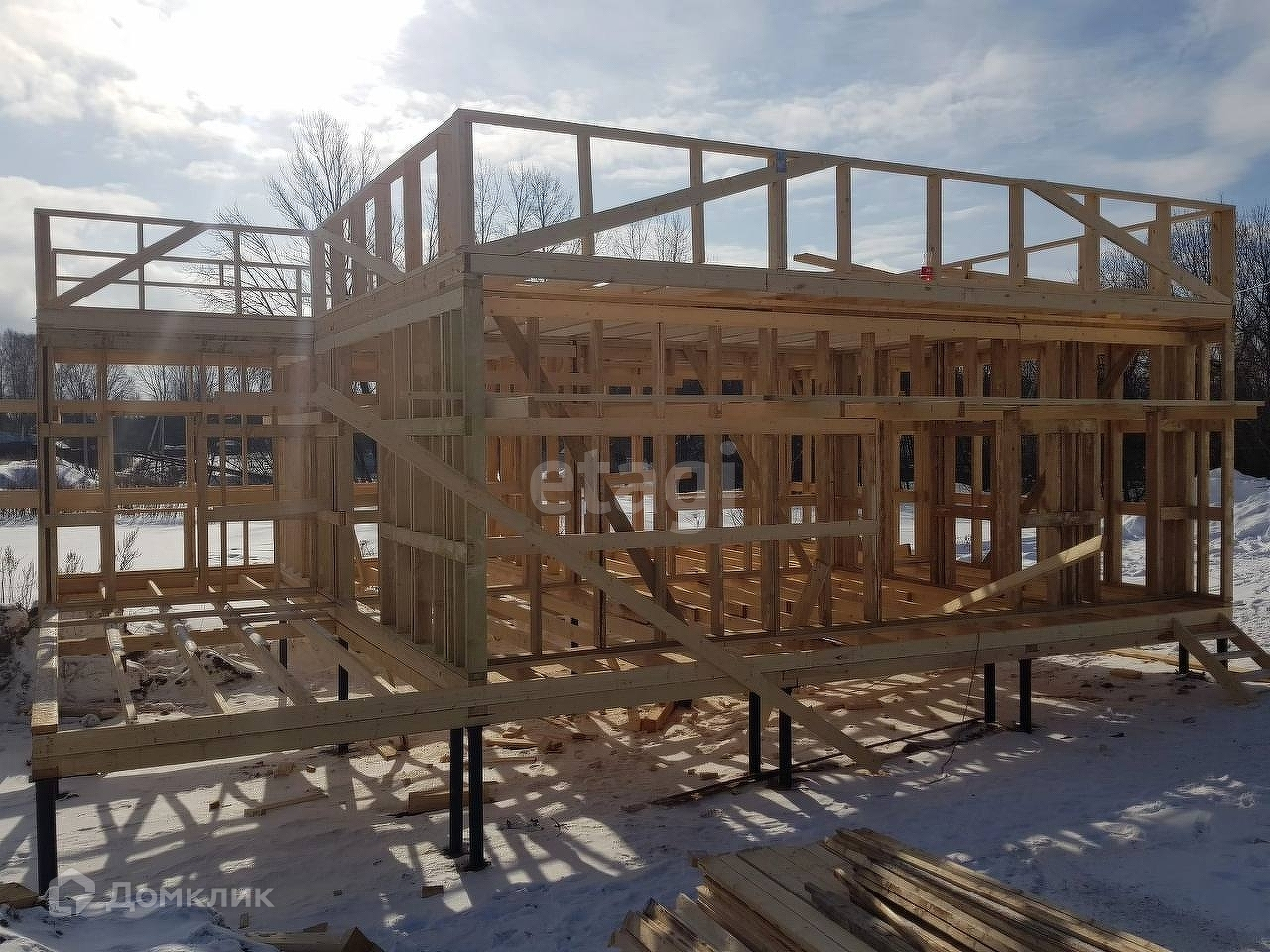 Строительство каркасного дома общей площадью 100 кв.м. будет завершено в мае 2023 г. Фундамент - винтовые сваи, утепление пола и потолка минеральной ватой толщиной 150 мм, кровля односкатная, стены утеплены ППС толщиной 150 мм, в доме будет отопление, водоснабжение, канализация и вентиляция. Стены будут готовы к финишной отделке - под покраску или поклейку обоев. Газ будет подведён к участку. Участок - 10 соток, на нем будет присутствовать небольшой искусственный водоем.