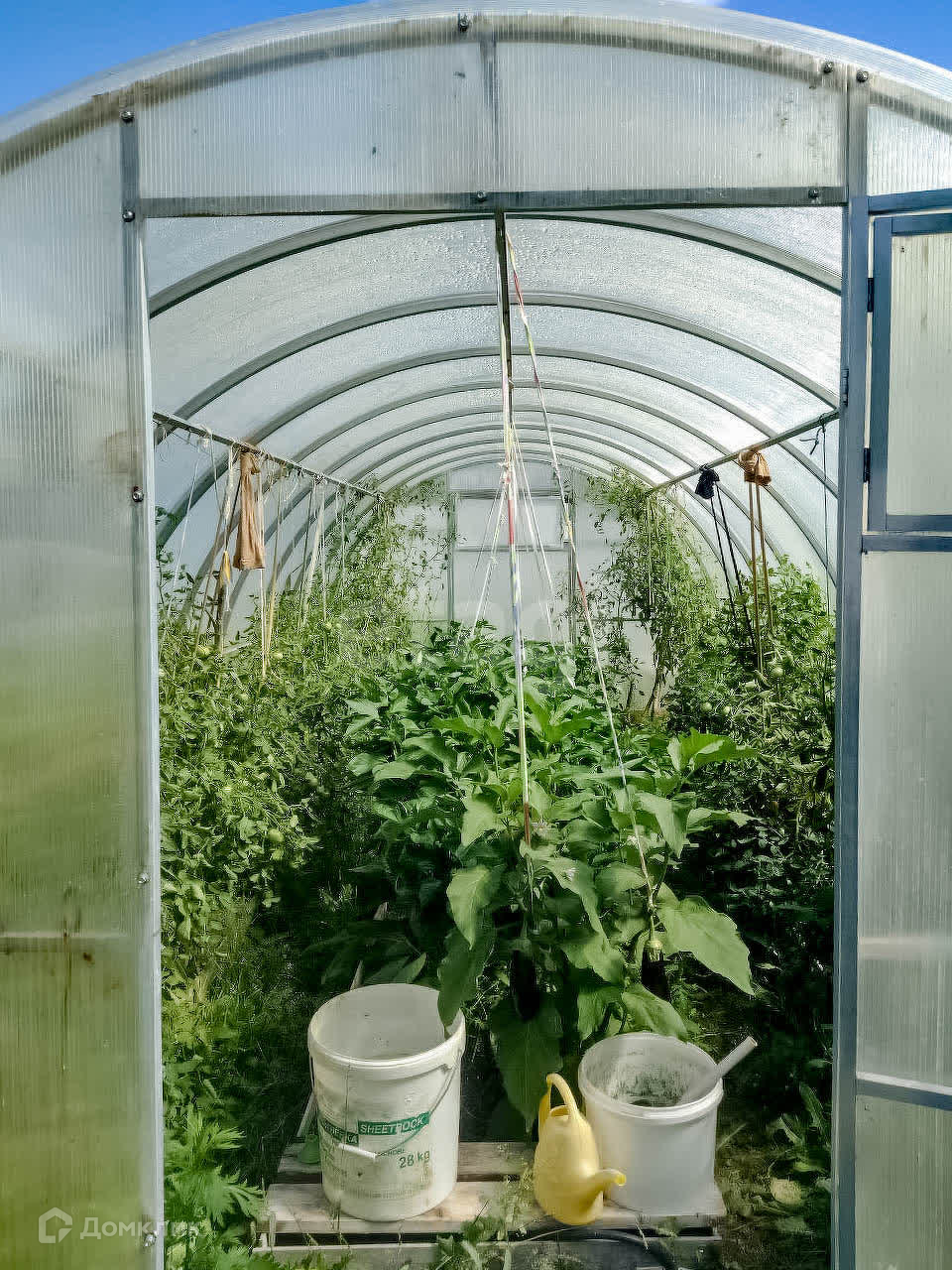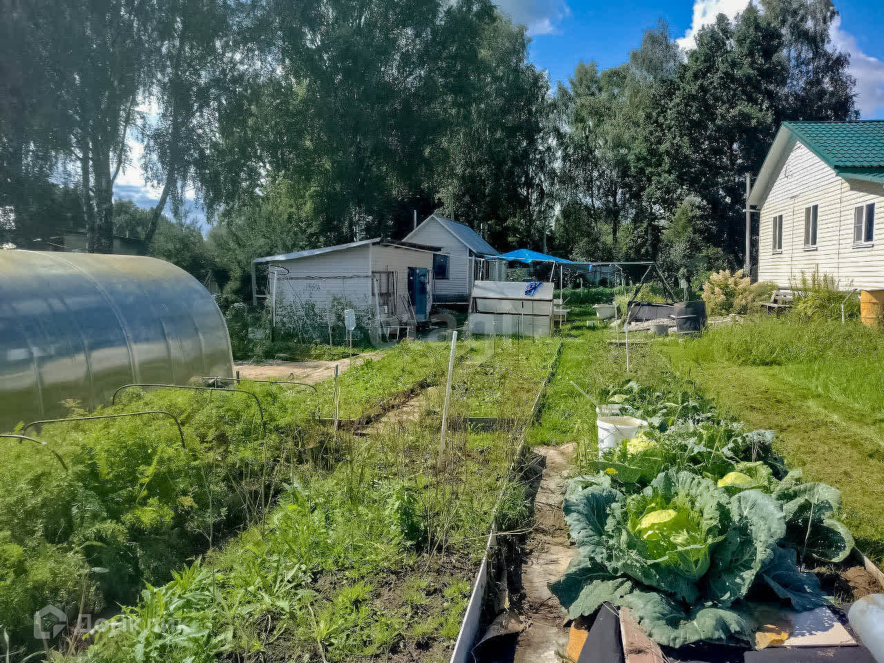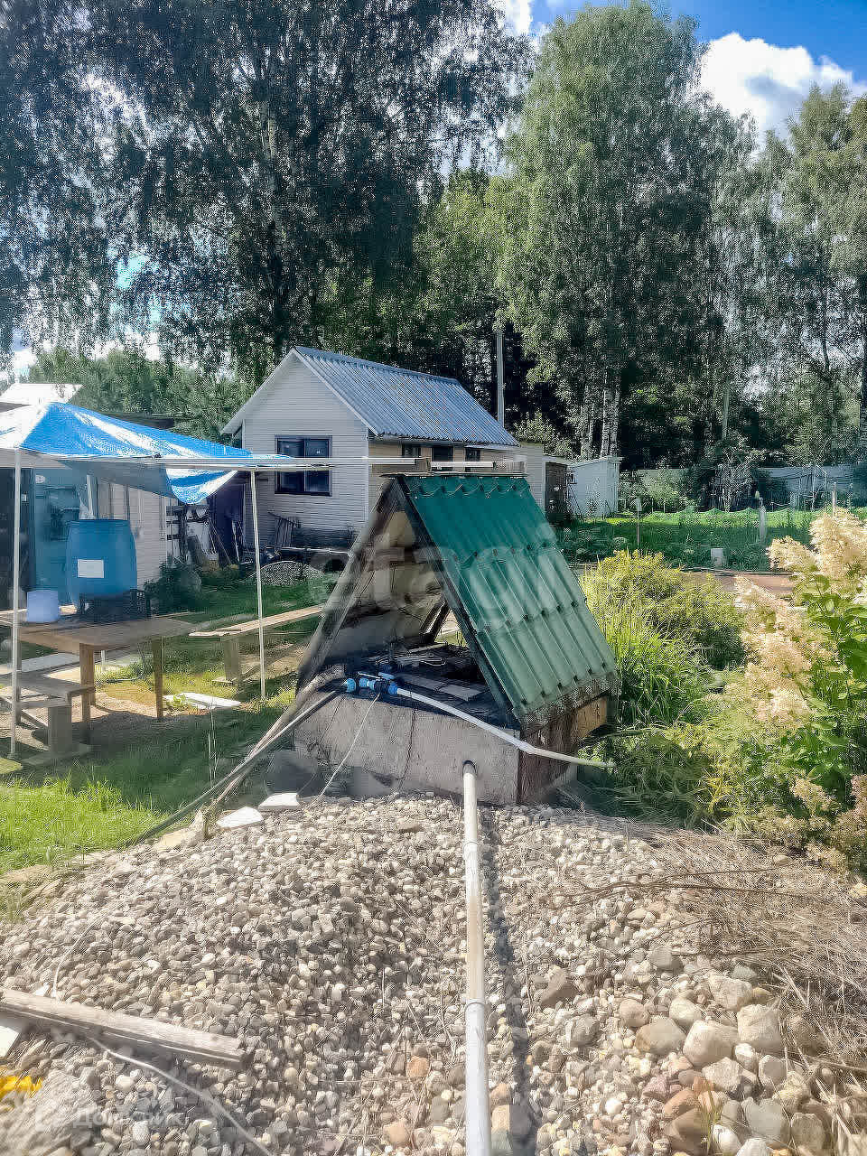 На участке 2 теплицы, баня, сарай, дровеник, беседка, бытовка. Соседи только по одной стороне, по другой стороне граничит с ручьём.