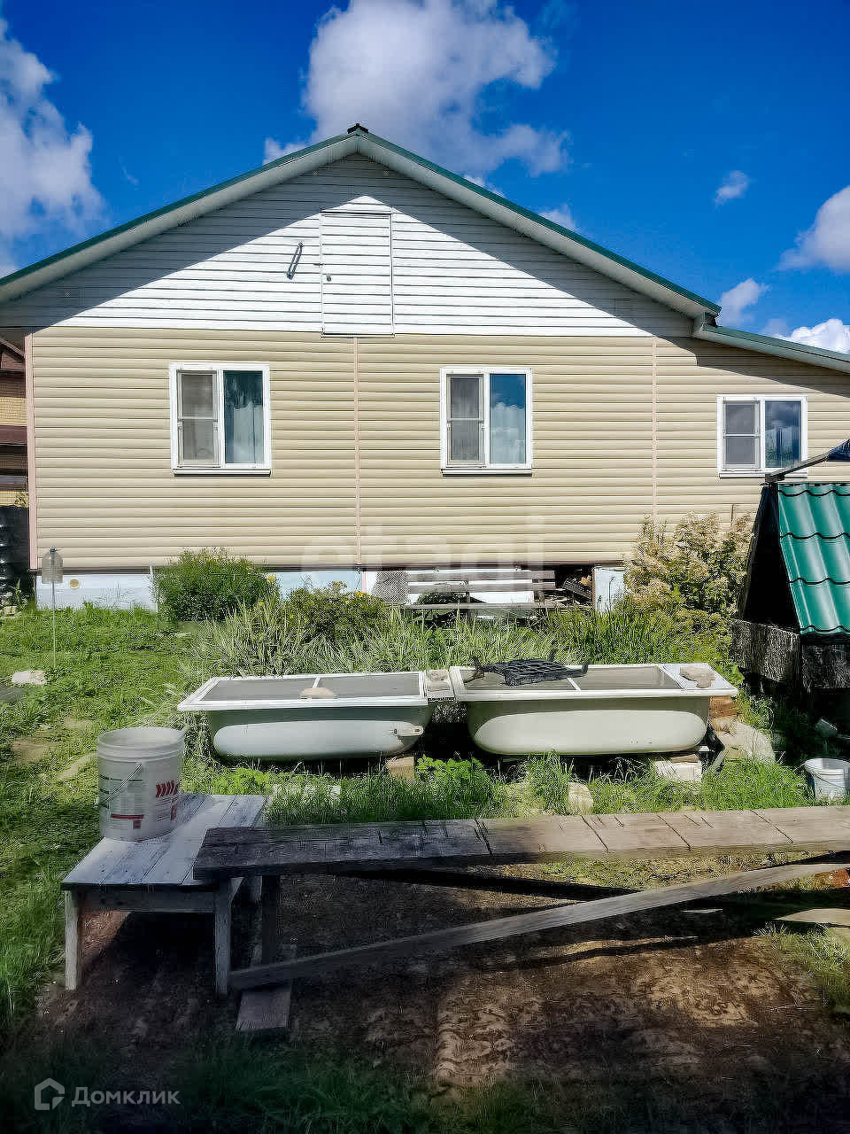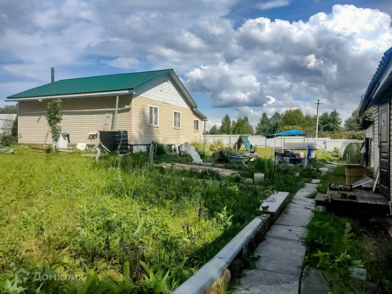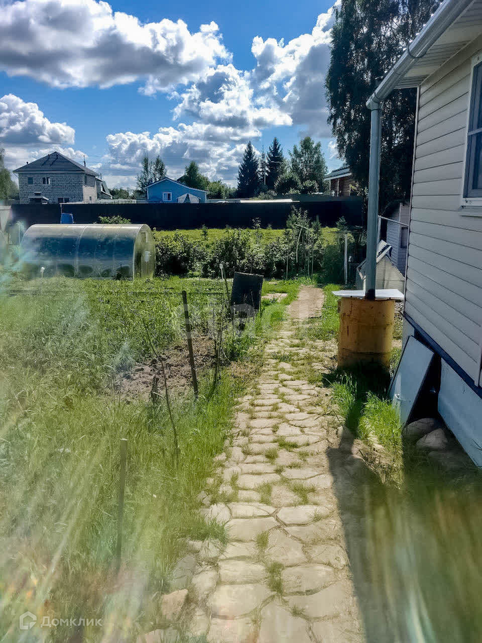 На участке 2 теплицы, баня, сарай, дровеник, беседка, бытовка. Соседи только по одной стороне, по другой стороне граничит с ручьём.