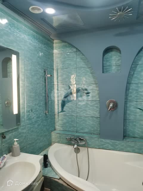 Ванная комната с дизайнерским ремонтом по индивидуальному проекту.