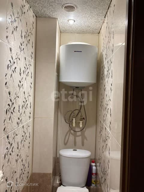 В туалете отделка кафелем. Остается водонагреватель.