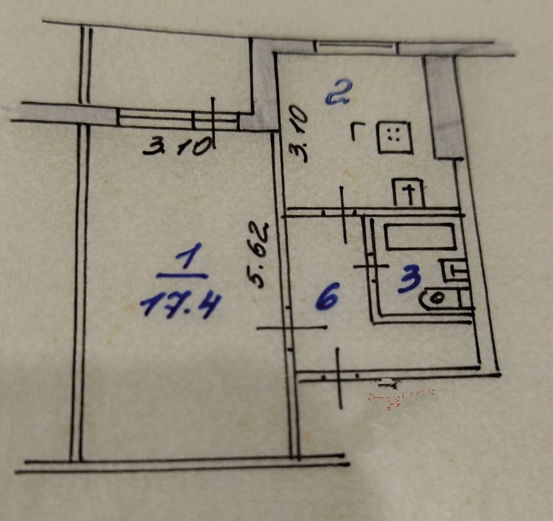 Комната - 17,4.