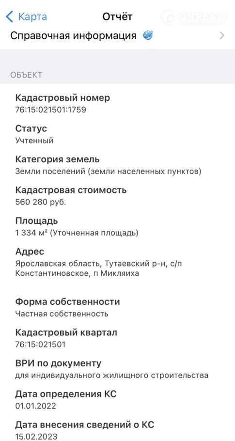 Кадастровый номер: 76:15:021501:1784.  Цена 30000 за сотку. Только в марте акция -8%