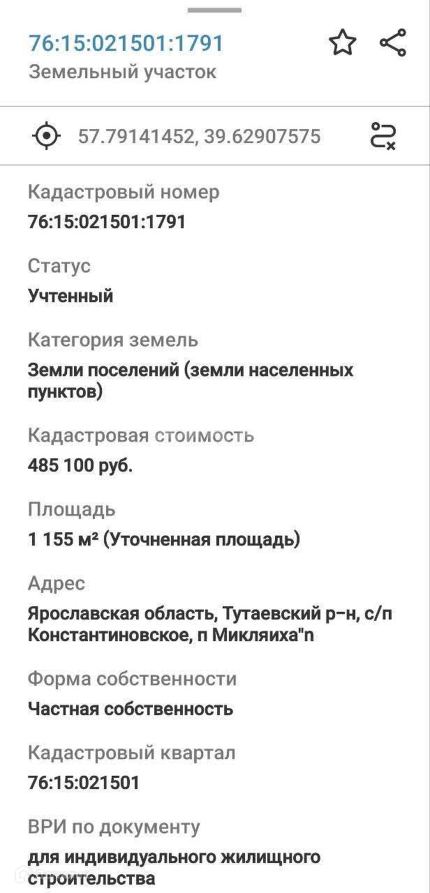 Участок под ИЖС, 11.6 сот. на продажу в поселке Микляиха