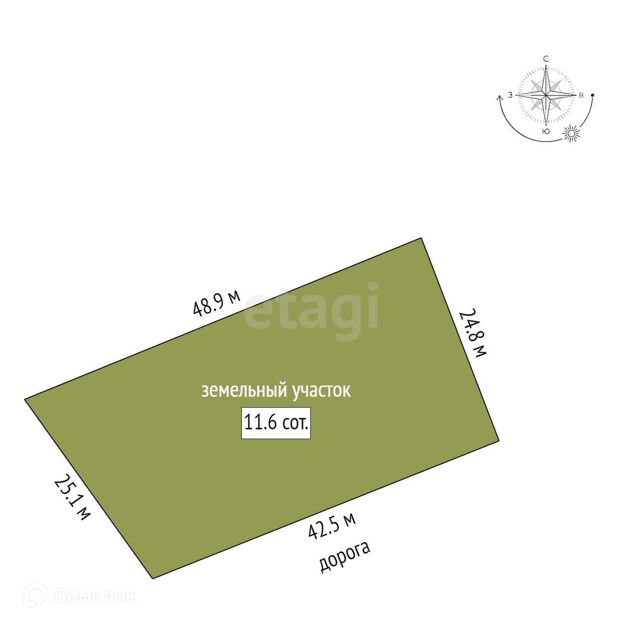Площадь участка 11.6 сот.