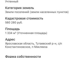 💲 Какая средняя цена продажи участка в поселке Микляиха, Ярославская область?