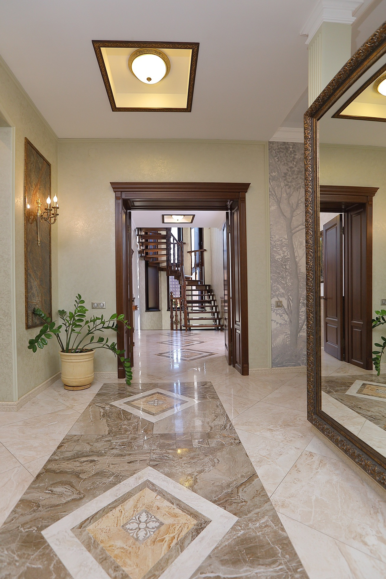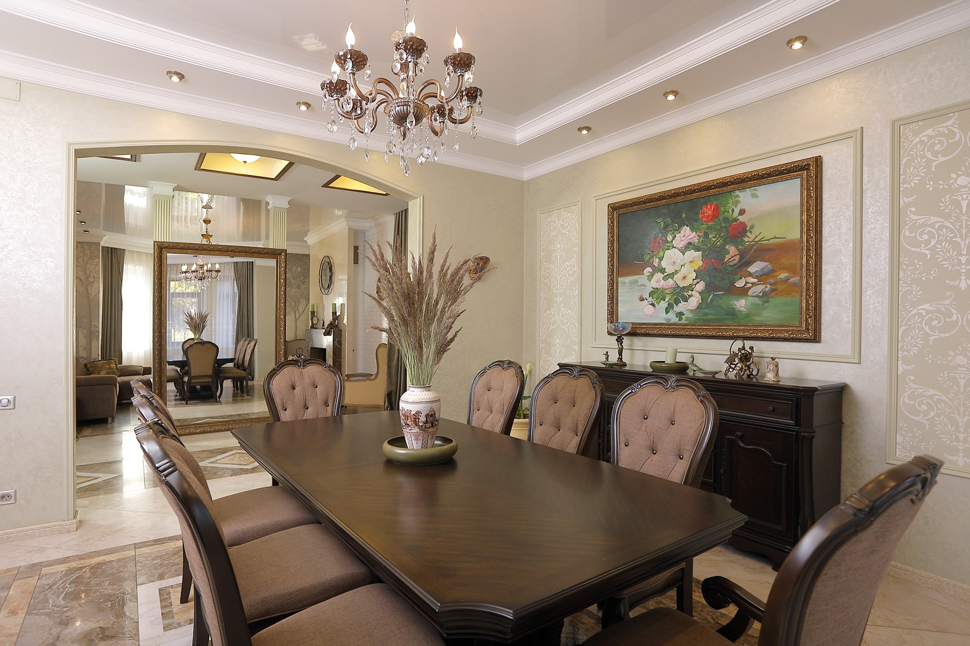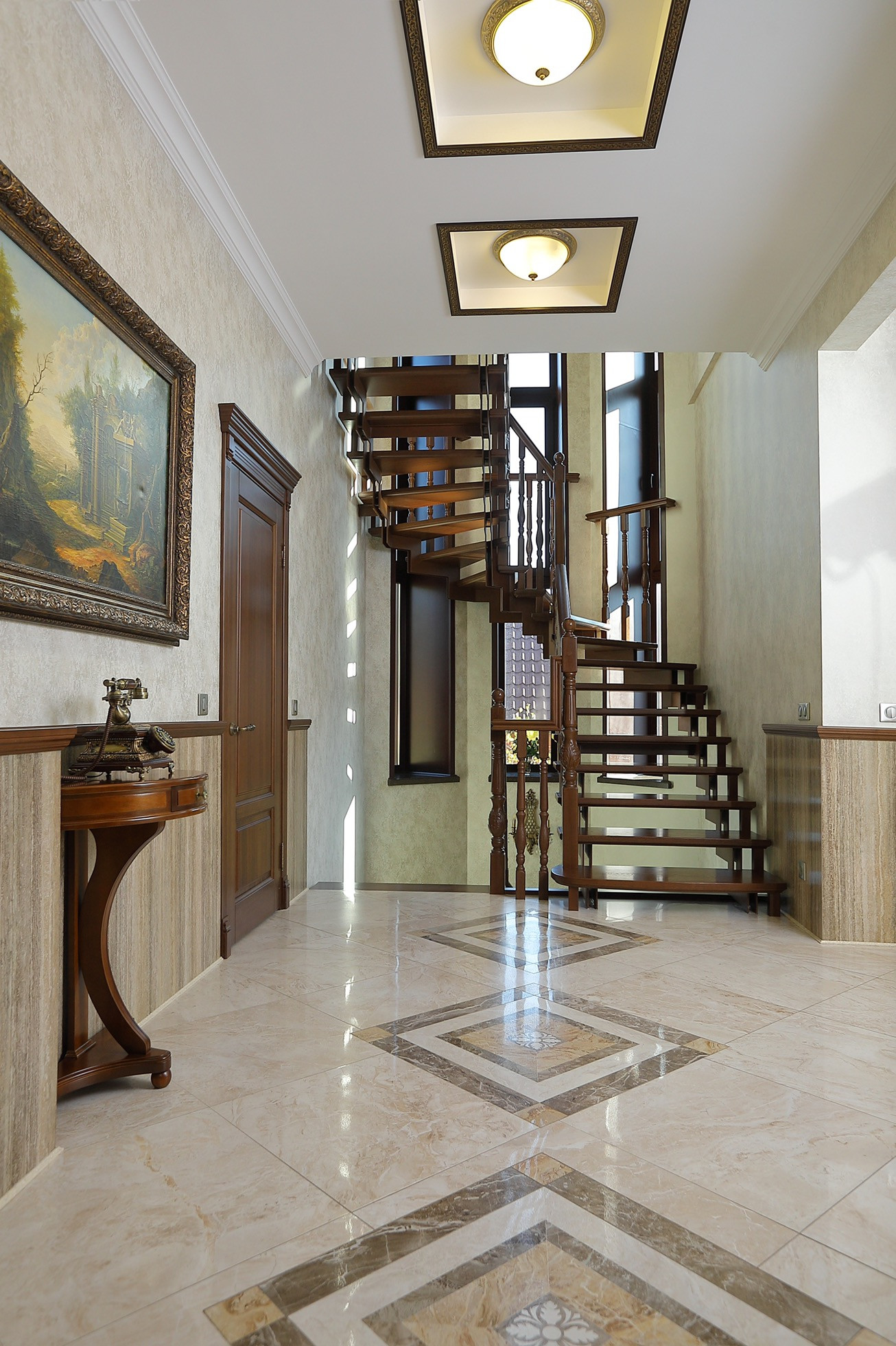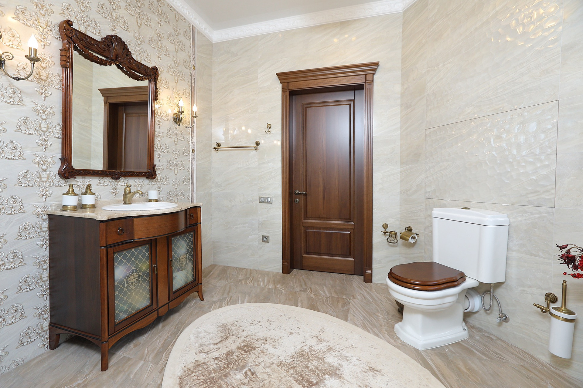 Оформление внутренних помещений выполненно в комфортной цветовой гамме, приятной глазу, а классический стиль никогда не выйдет из моды и не надоест. Мебель, детали интерьера выглядят достойно и привлекательно.  Комнаты просторные, наполнены светом.