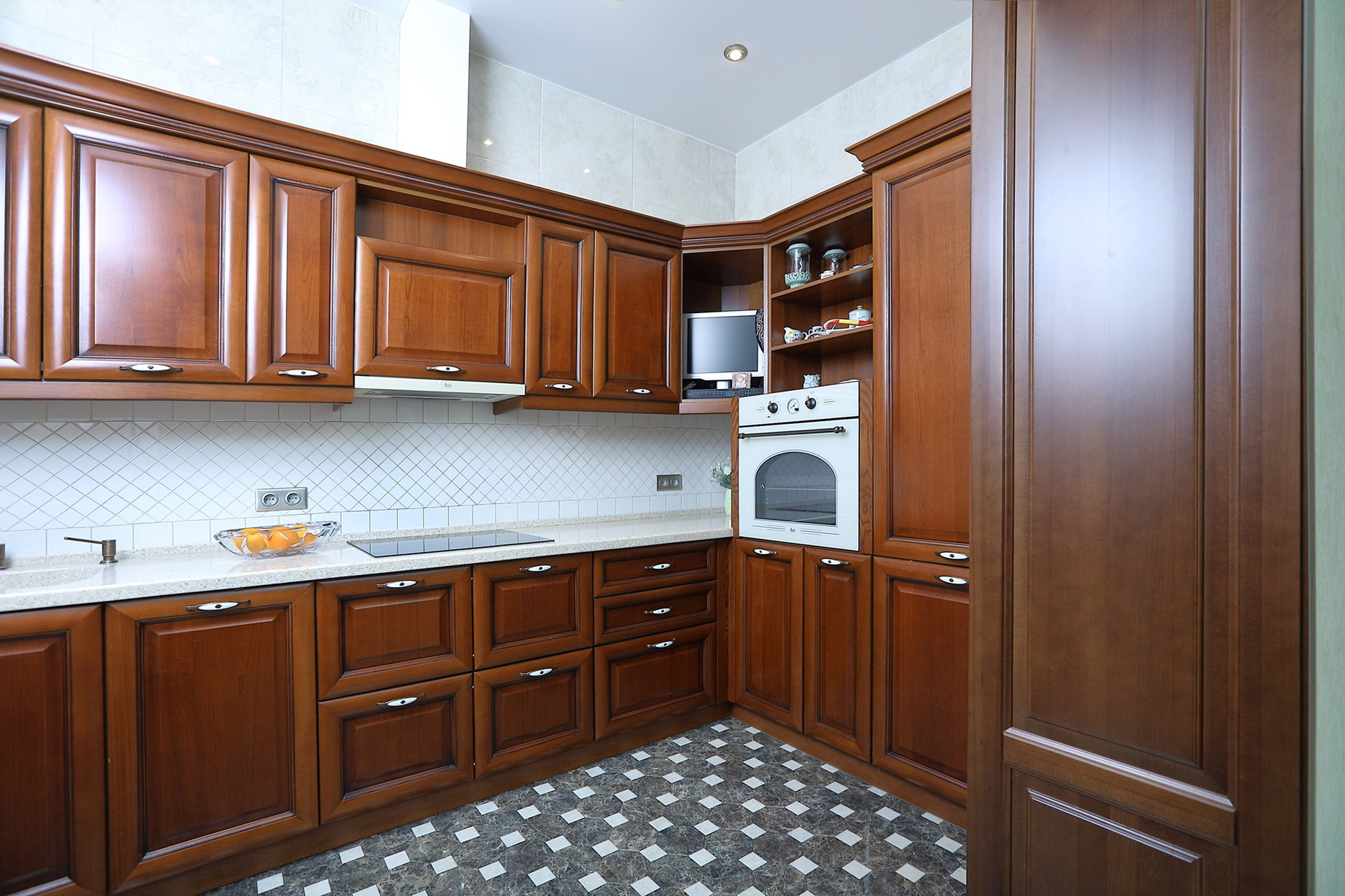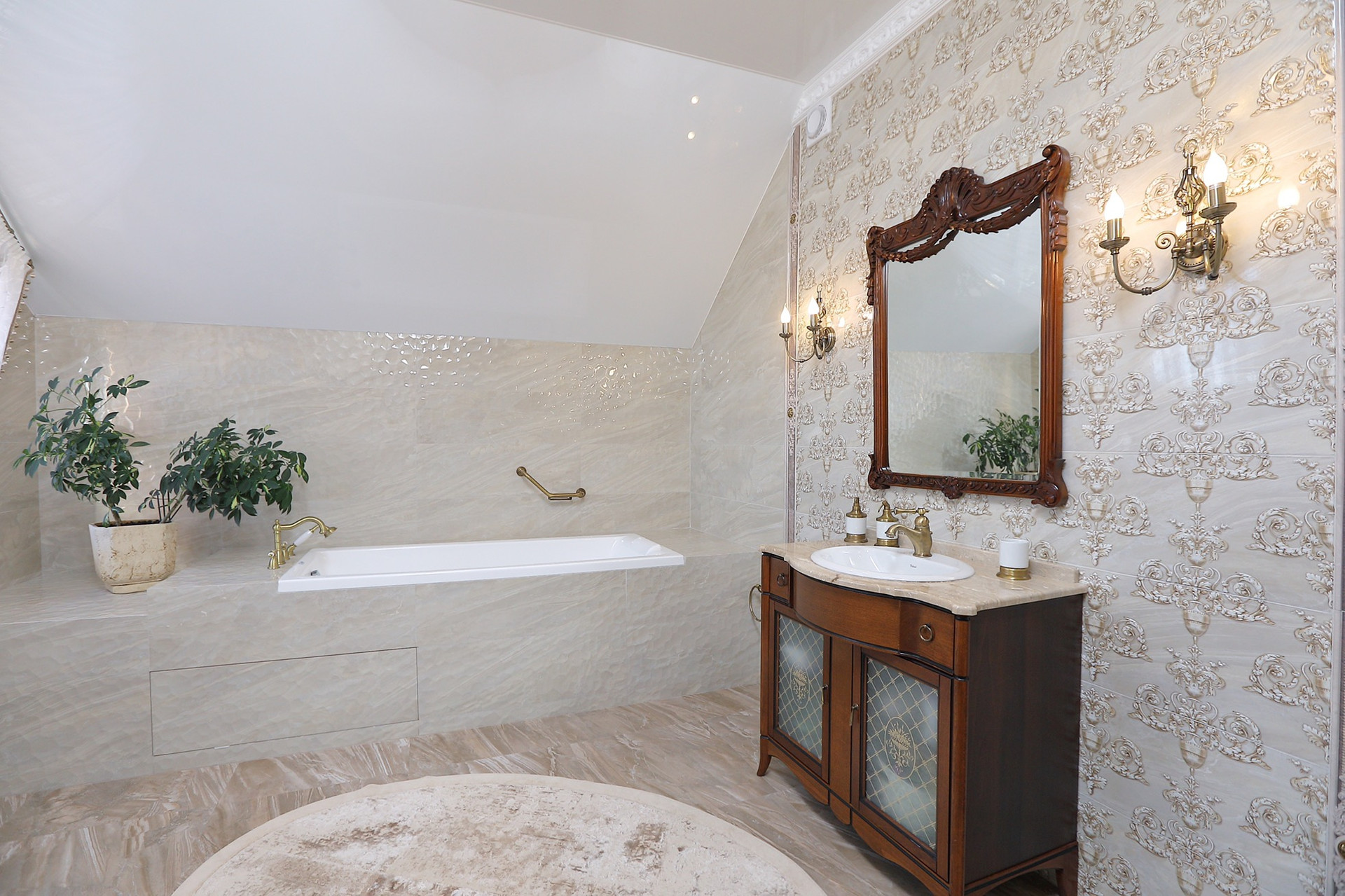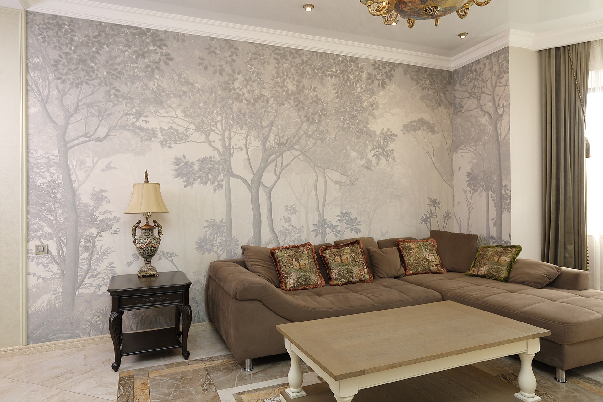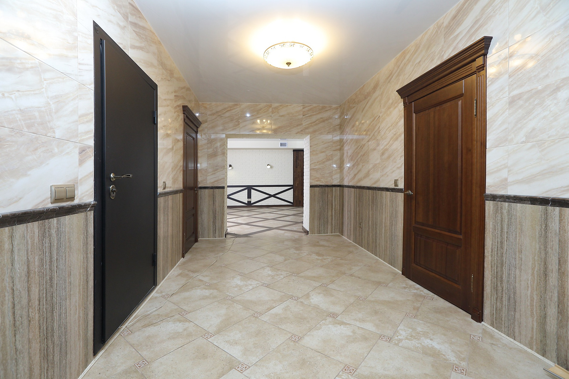 Оформление внутренних помещений выполненно в комфортной цветовой гамме, приятной глазу, а классический стиль никогда не выйдет из моды и не надоест. Мебель, детали интерьера выглядят достойно и привлекательно.  Комнаты просторные, наполнены светом.