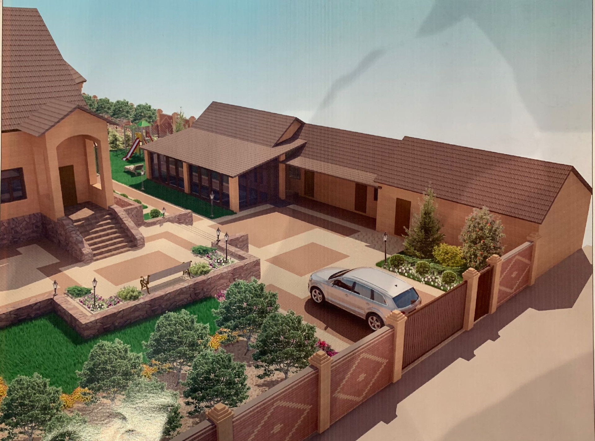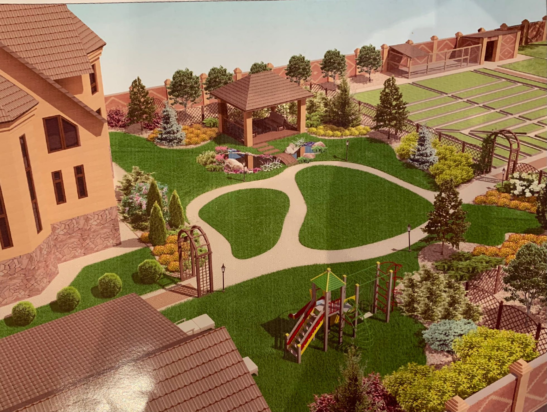 Отдельно стоит выделить дворовую территорию. Она удачно поделена на секторы по функционалу, есть место и для отдыха с семьей, для содержания домашних животных, выращивания овощей при желании, или можно поставить большую детскую площадку.