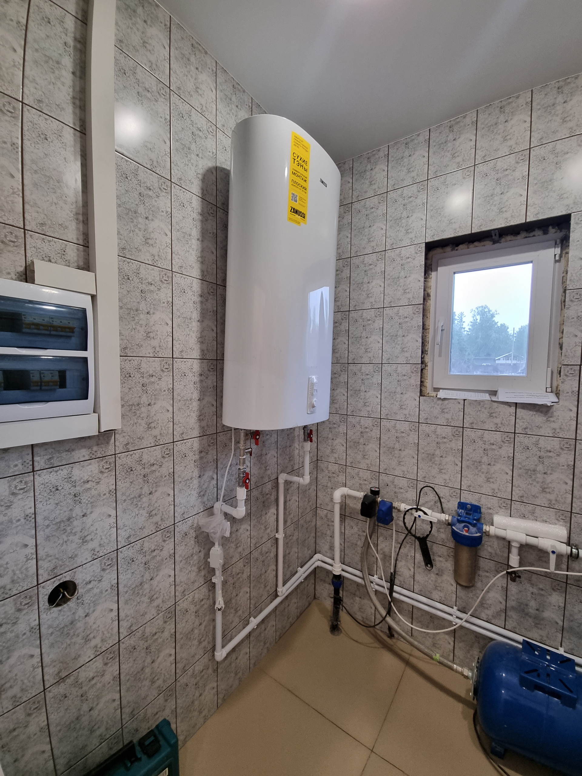 - Дом новый, на добротном фундаменте, выполнен из шлакоблока. Утеплен очень хорошо, зимой жара. Отопление электрокотел «Зота», теплый пол на всем первом этаже. Септик 6 кубов, вода - скважина, электричество 15 кв.т., бойлер.