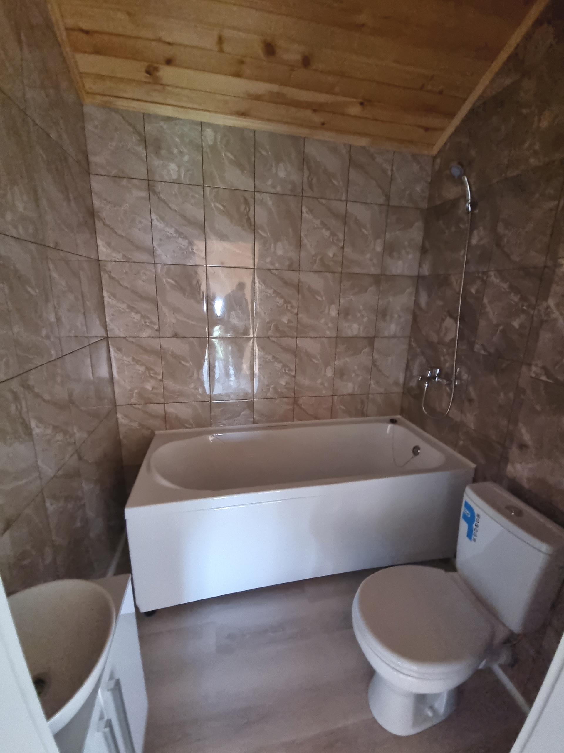 - Внутренняя отделка из качественных материалов – пол ламинат, стены декоративная штукатурка, покраска. Сан узлы и котельная – керамогранит, кафель, 1 этаж натяжные потолки, 2 этаж вагонка, хорошая сан техника, радиаторы,