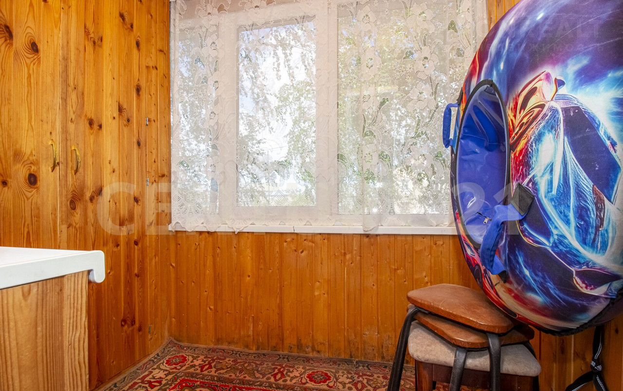 Балкон застeклeн и oбшит дeревом.