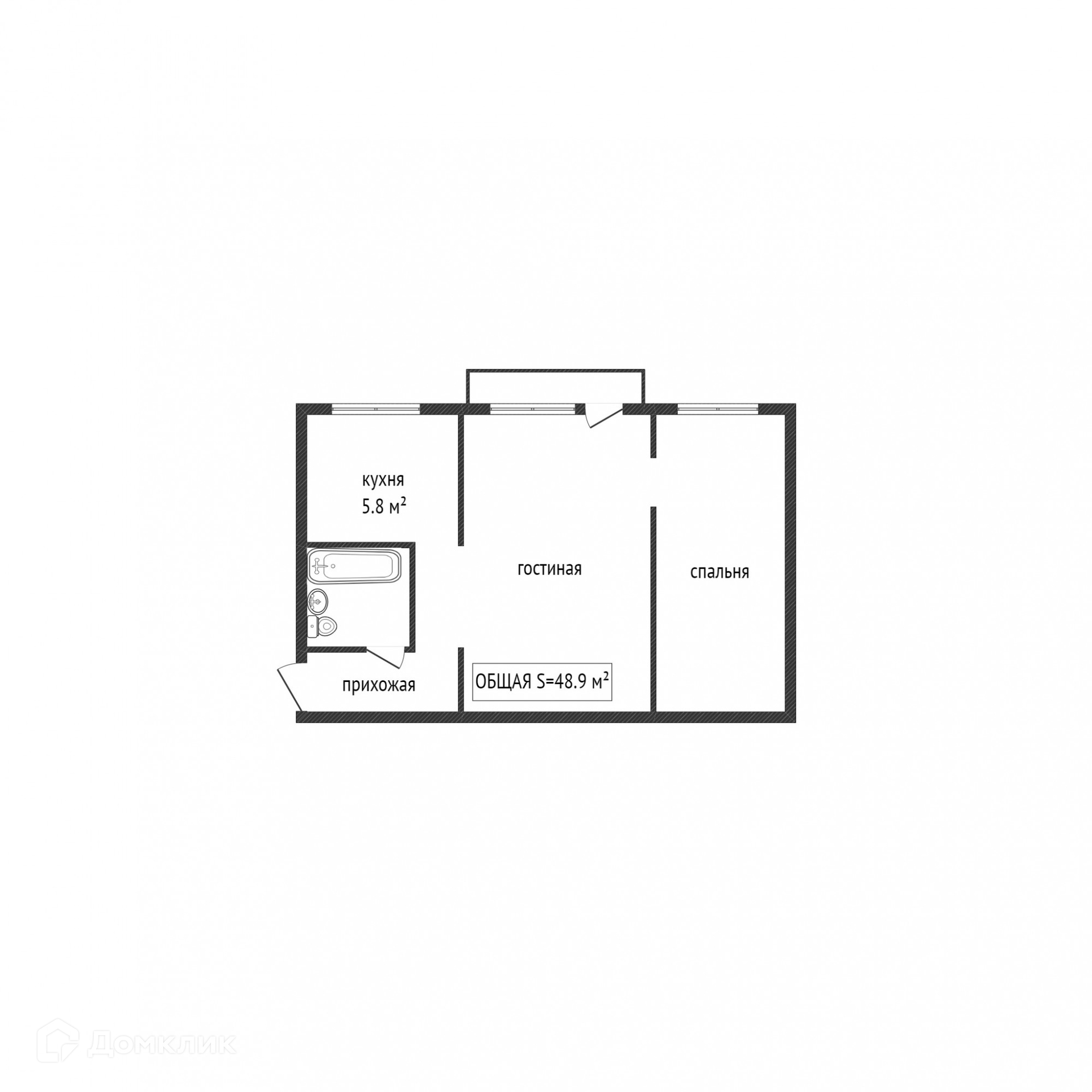 Общая площадь 48.9 м2