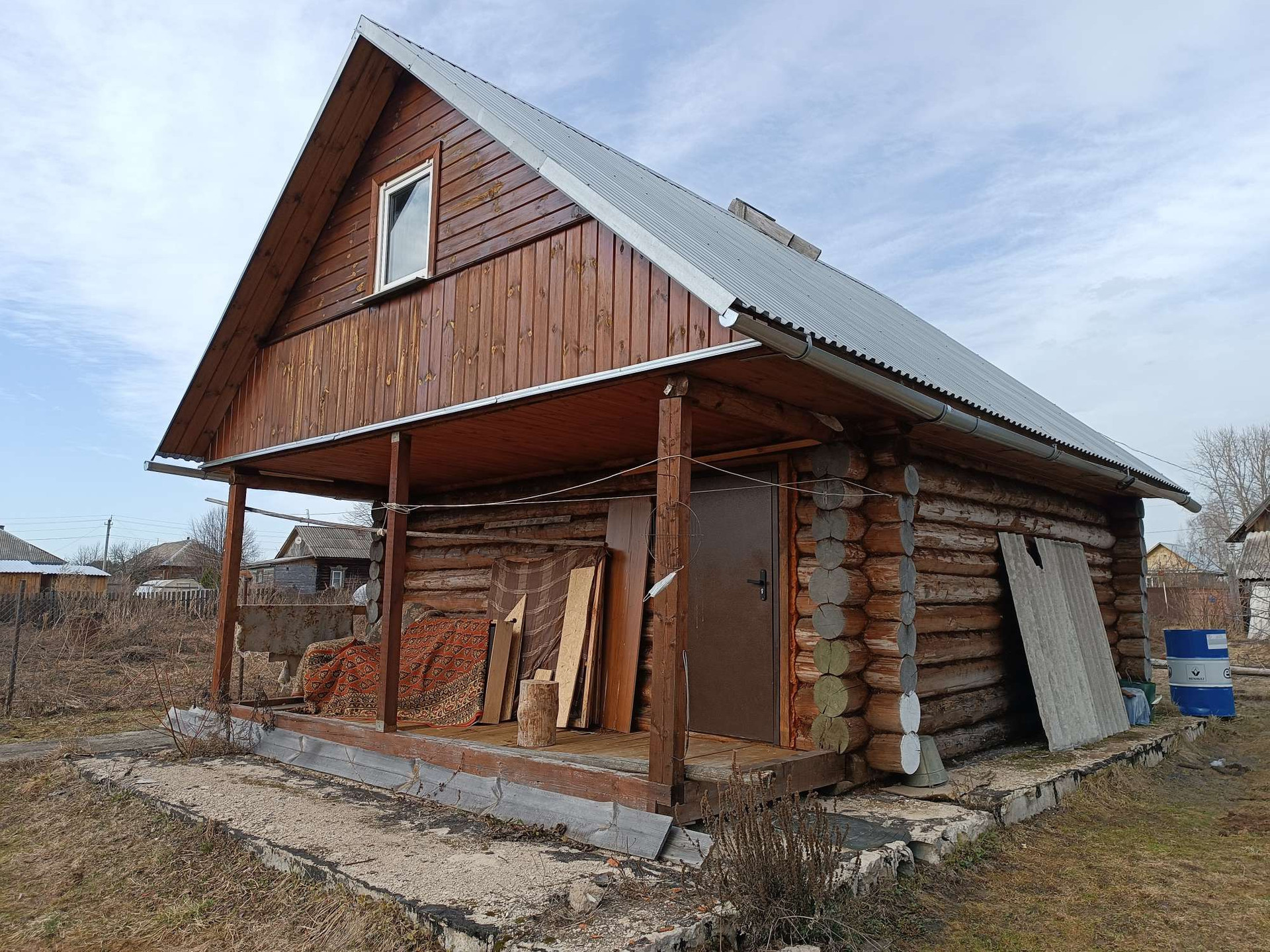 Бонусом новый рубленый домик 35 м2, без отделки, 2 этажа под крышей,проведено эл-во