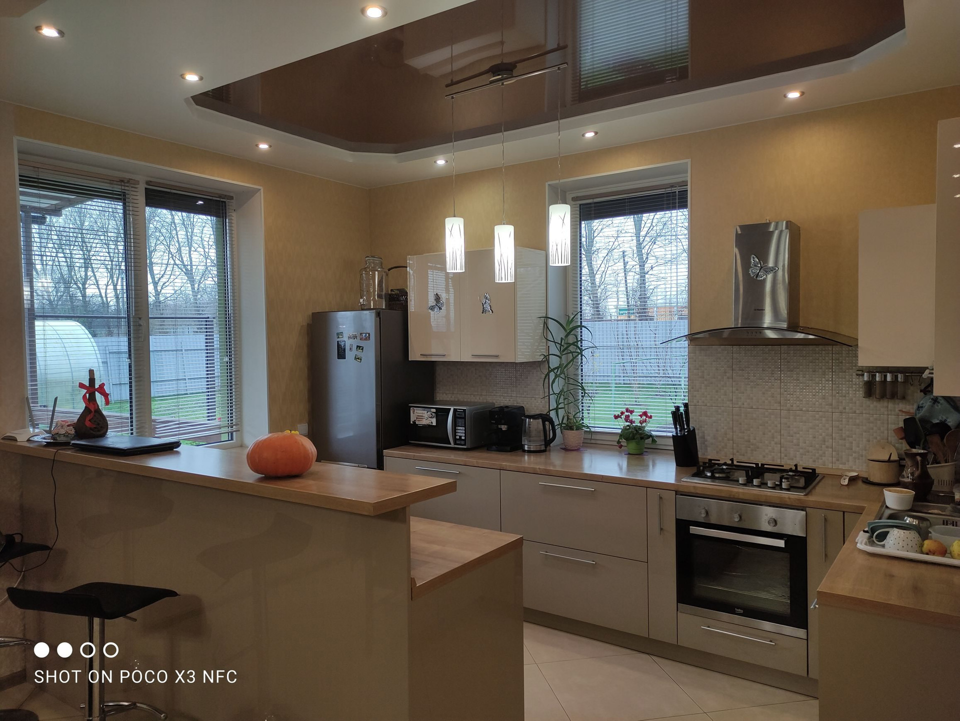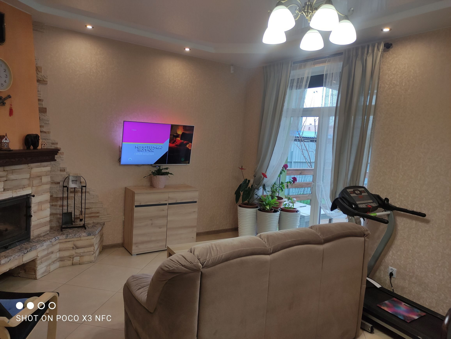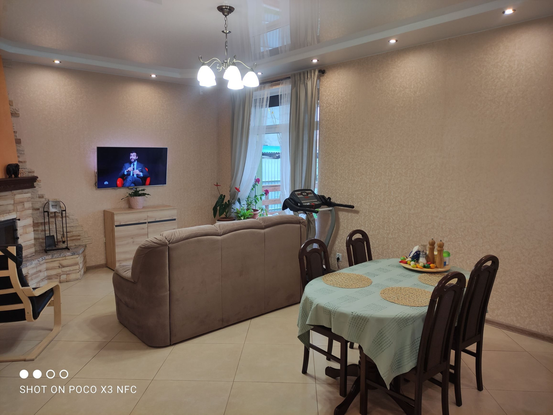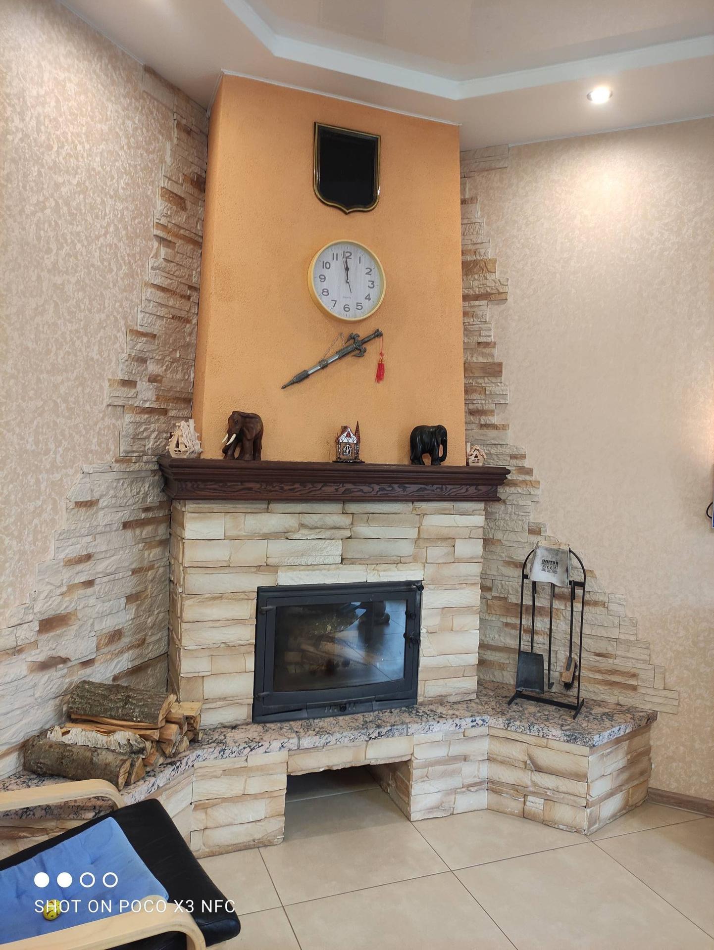 Кухня-гостиная 35,5 кв м(с выходом на террасу)  с камином
