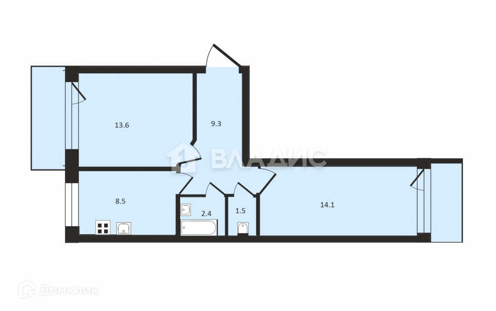 Жилая площадь 29.7 м2
