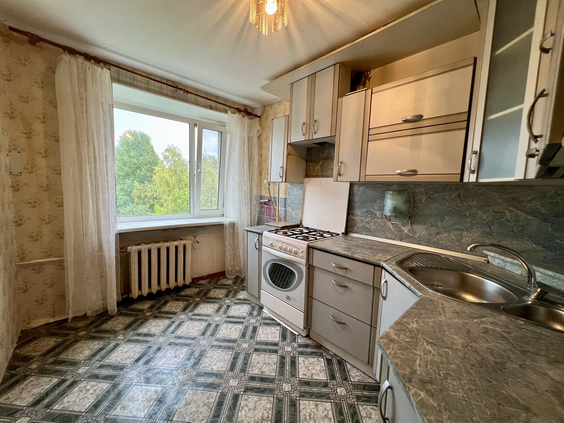О квартире: площадь 49 кв.м. плюс 2 балка в каждой комнате площадью 3,7 кв.м. и 4,3 кв.м.  Требуется косметический ремонт, установлены счётчики на газ, воду. Установлены окна ПВХ.