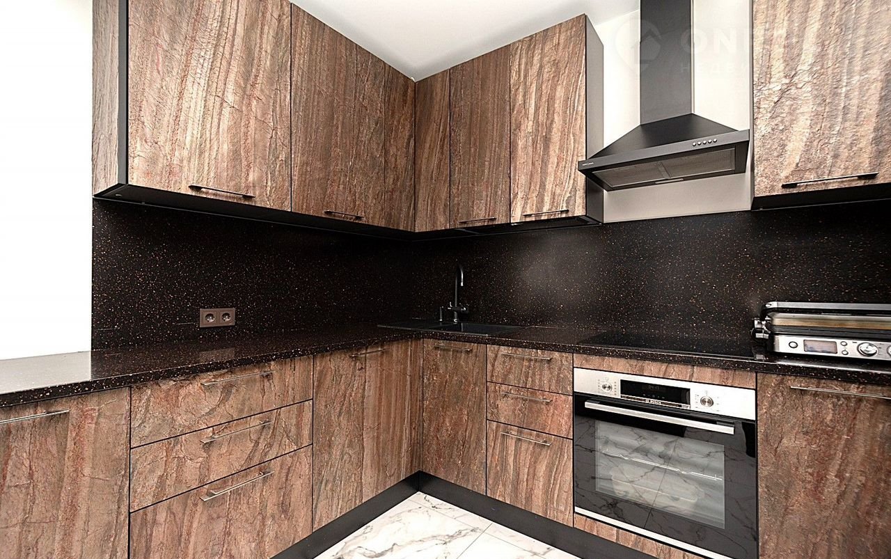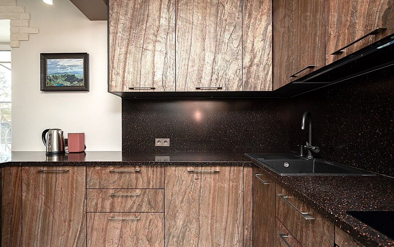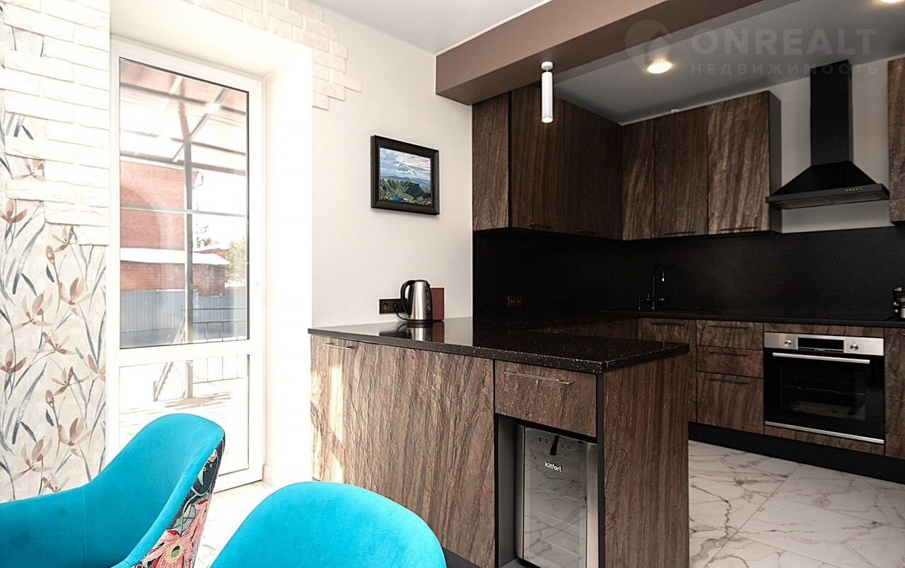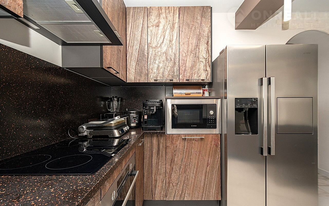 - Современная кухня с выходом на террасу для уютных завтраков и вечернего отдыха на свежем воздухе