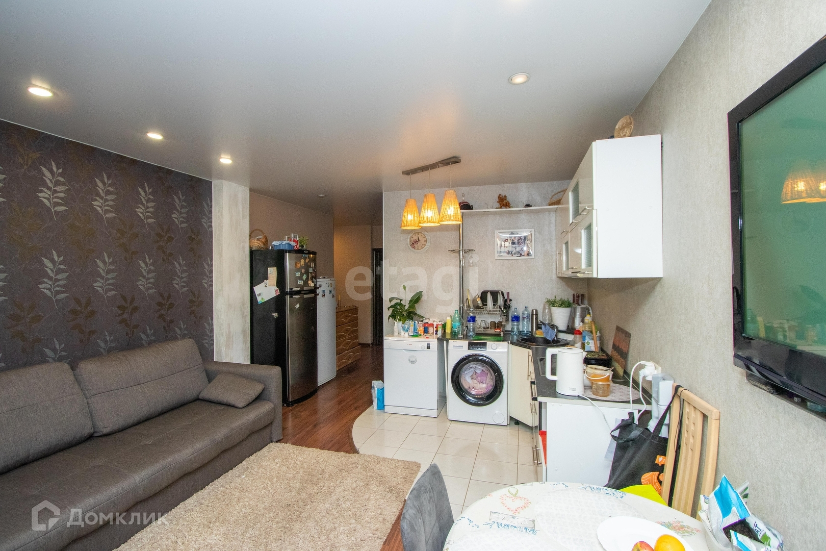 В квартире остаётся кухонный гарнитур, встроенный шкаф.