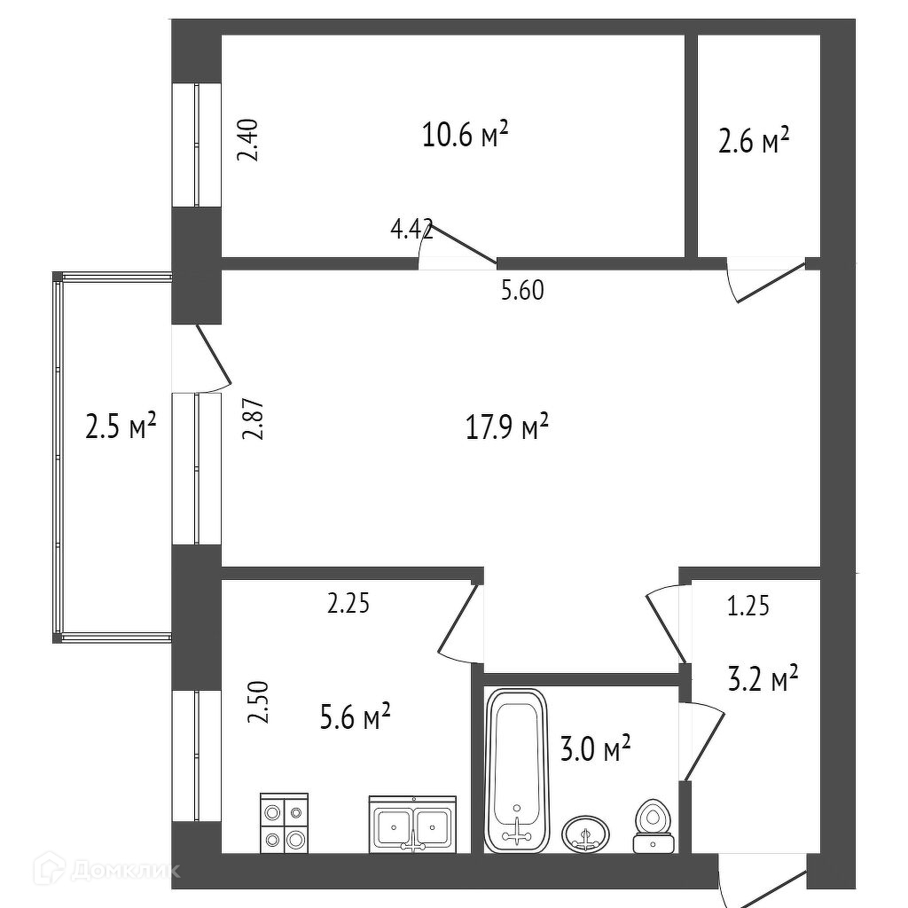 Балкон, лоджия 1 балкон