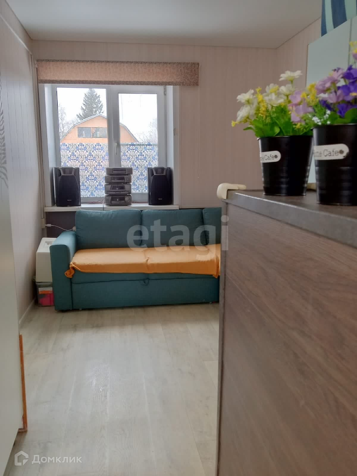 Площадь квартиры 44 кв. м.Вода, канализация центральные. В доме кухня гостиная, большая комната ,можно разделить на две комнаты ( на потолке заложен брус для потенциальной перегородки), санузел совмещен, терраса.