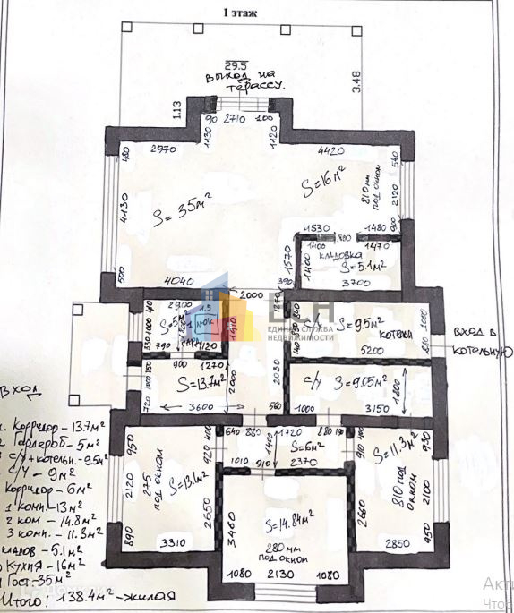 Жилая площадь 138.4 м2