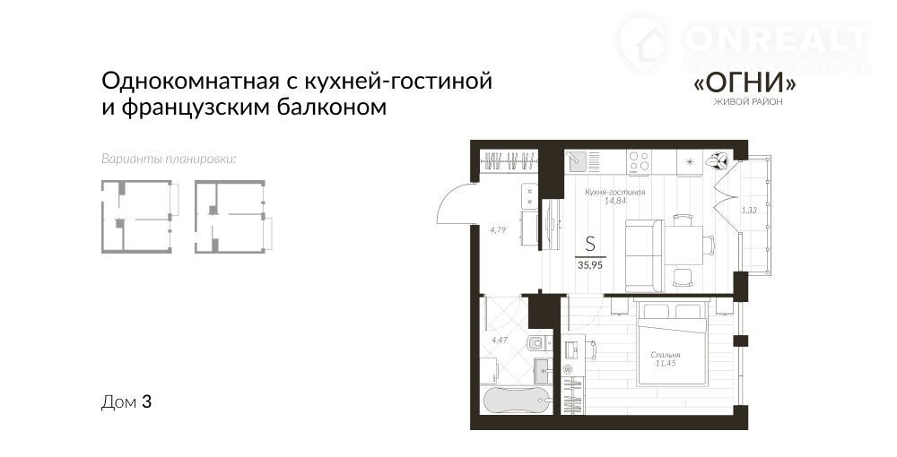 Общая площадь 36 м2