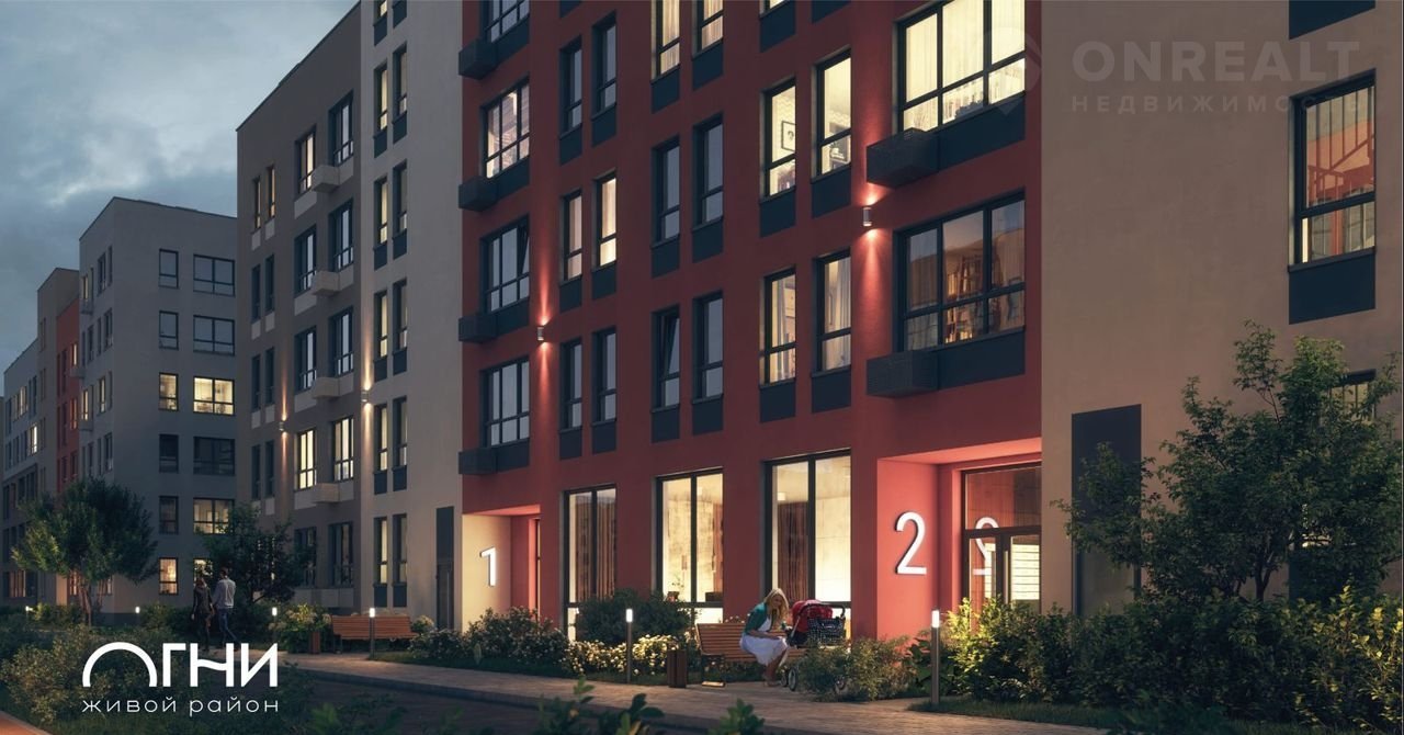 Живой район «Огни» — это пять кварталов, объединенных между собой центральной аллей. Кварталы состоят из домов высотой 5 этажей. Дома кварталов формируют безопасный двор-сквер без машин. Спроектированы спортивные и детские площадки с современным оборудованием. Во дворе много мест для уединённого отдыха.
