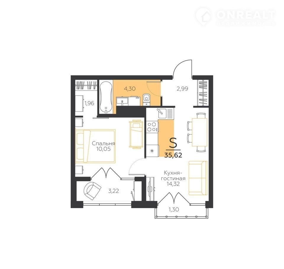 Общая площадь 35.6 м2