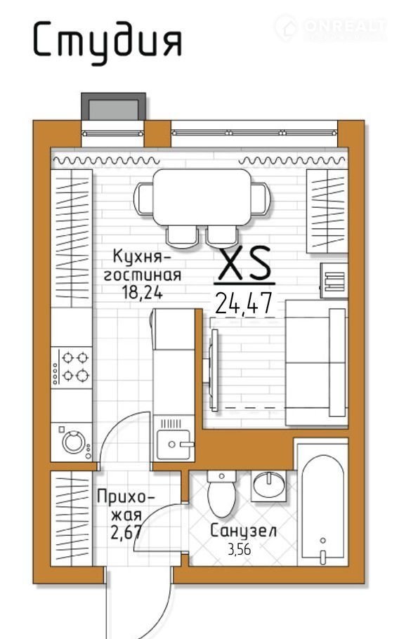 Общая площадь 24.5 м2