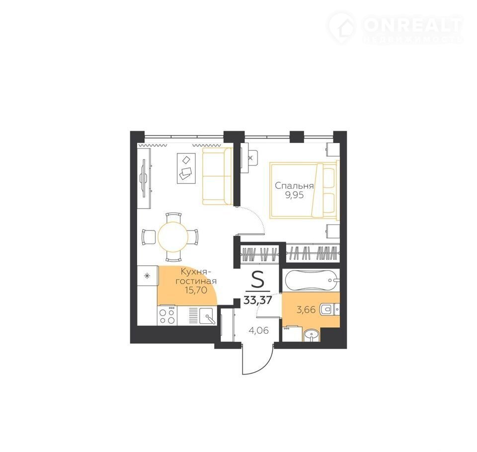 Общая площадь 33.7 м2