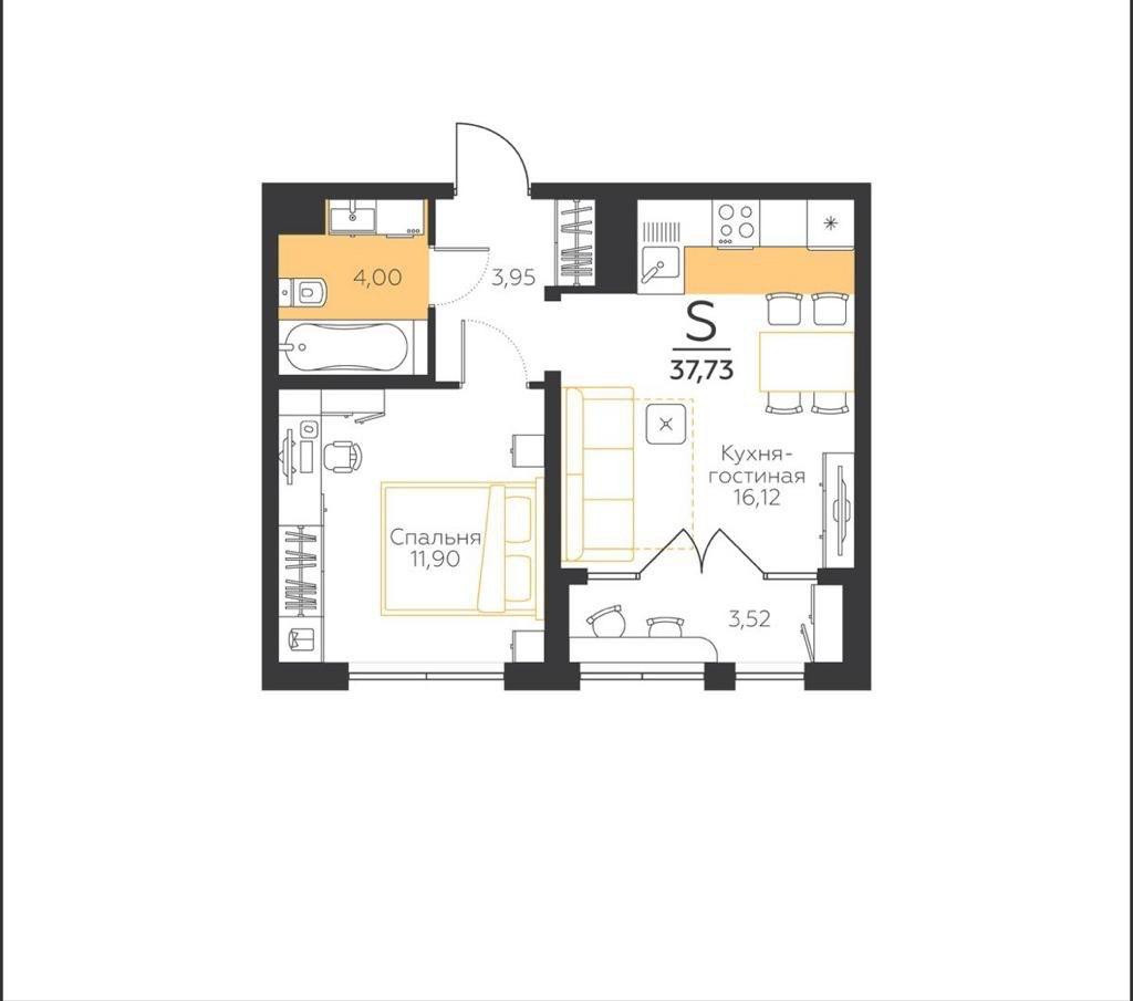 Общая площадь 37.73 м2