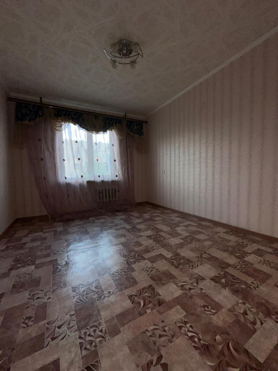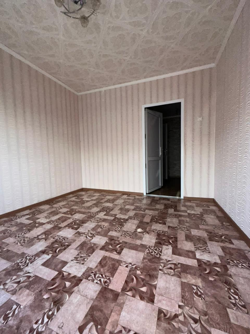 Во всех комнатах потолке плитка ПВХ, на полу линолеум, стены оклеены обоями.