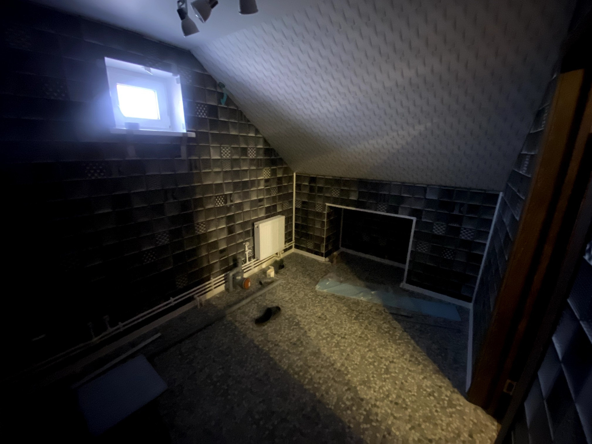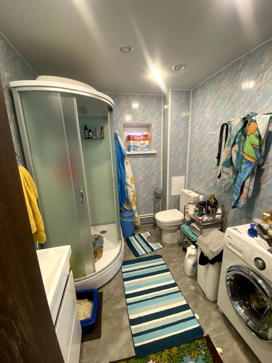 В доме два санузла, на первом этаже душевая кабина, на втором планировалась полноценная ванна.