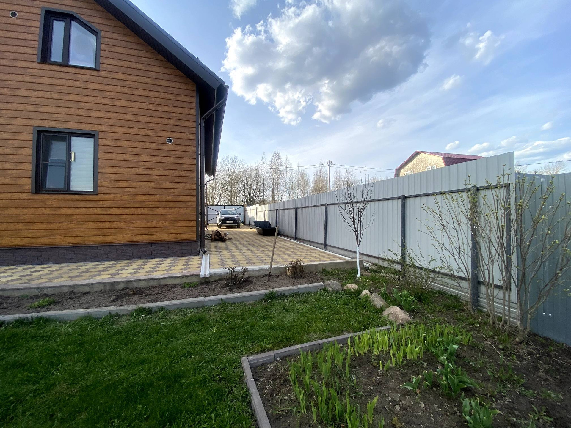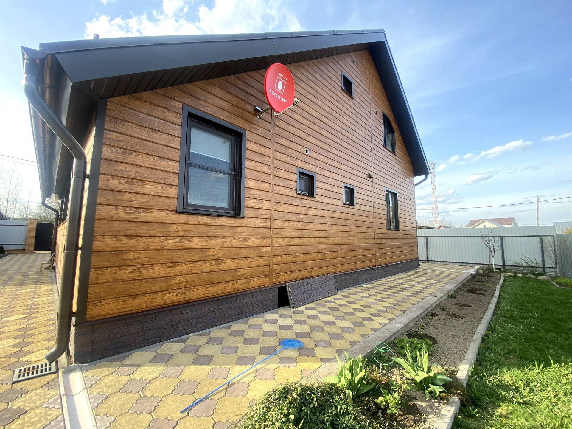 Дом двухэтажный 2020 года постройки, каркасный, зашит мет. сайдингом, крыша металлочерепица, фундамент свайный.