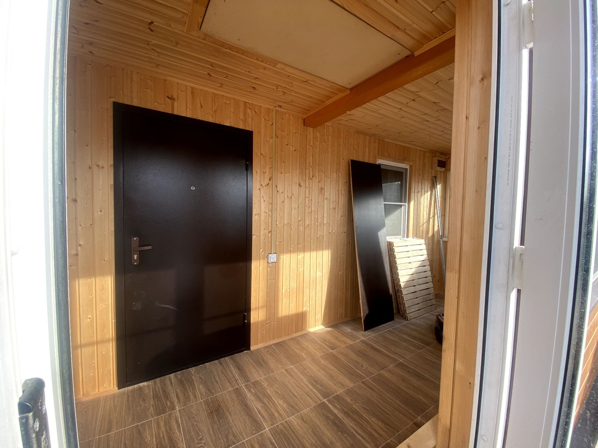 Внутренняя отделка имитация бруса, на полу плитка, линолеум на первом этаже, на втором качественный ламинат.