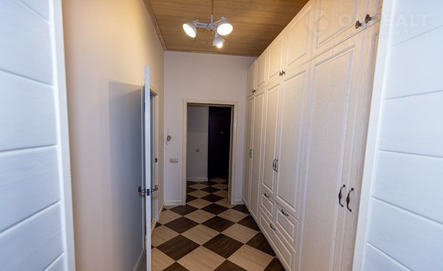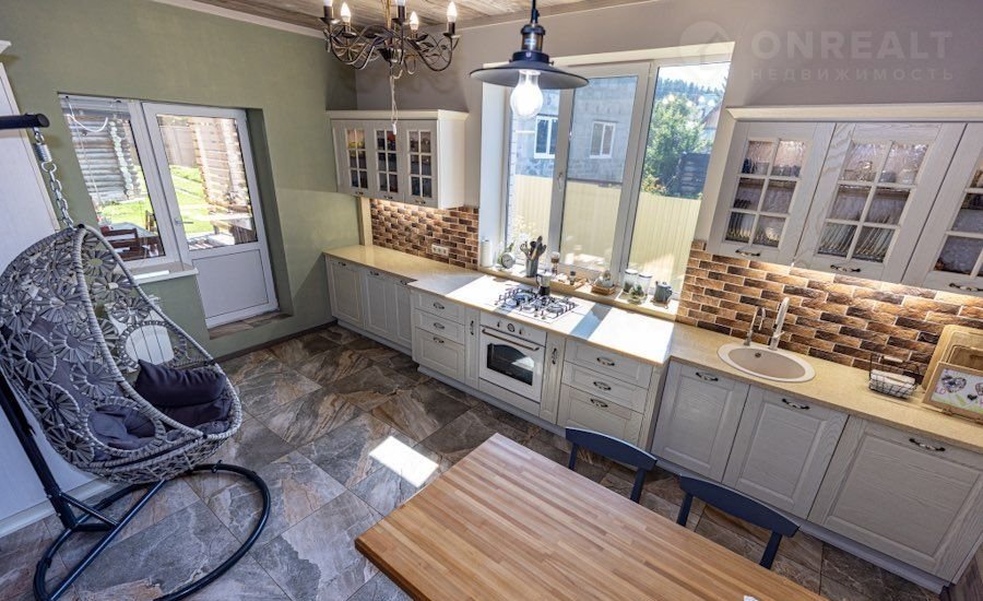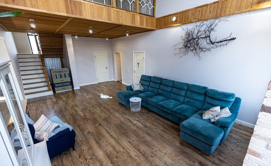 Потолки на первом этаже и частично на втором - сибирская лиственница. Шкаф в коридоре 4м - Баккара ( немецкая пленка), кухня Баккара из массива ( более 4х п.м)