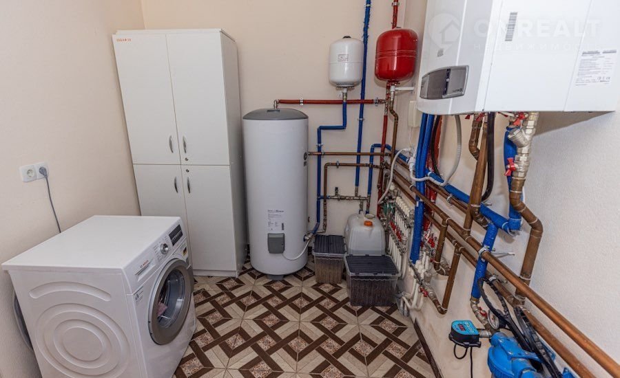 Бойлер на 200литров.Автономная канализация - Топаз. Стены укреплены фасадный сеткой, отштукатурены и оклеяны стеклообоями и покрашены краской Флюгер. Лестница - металлокаркас/ясень.