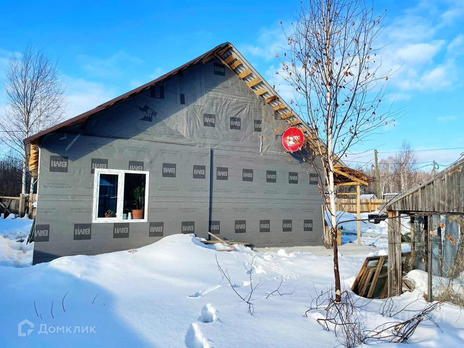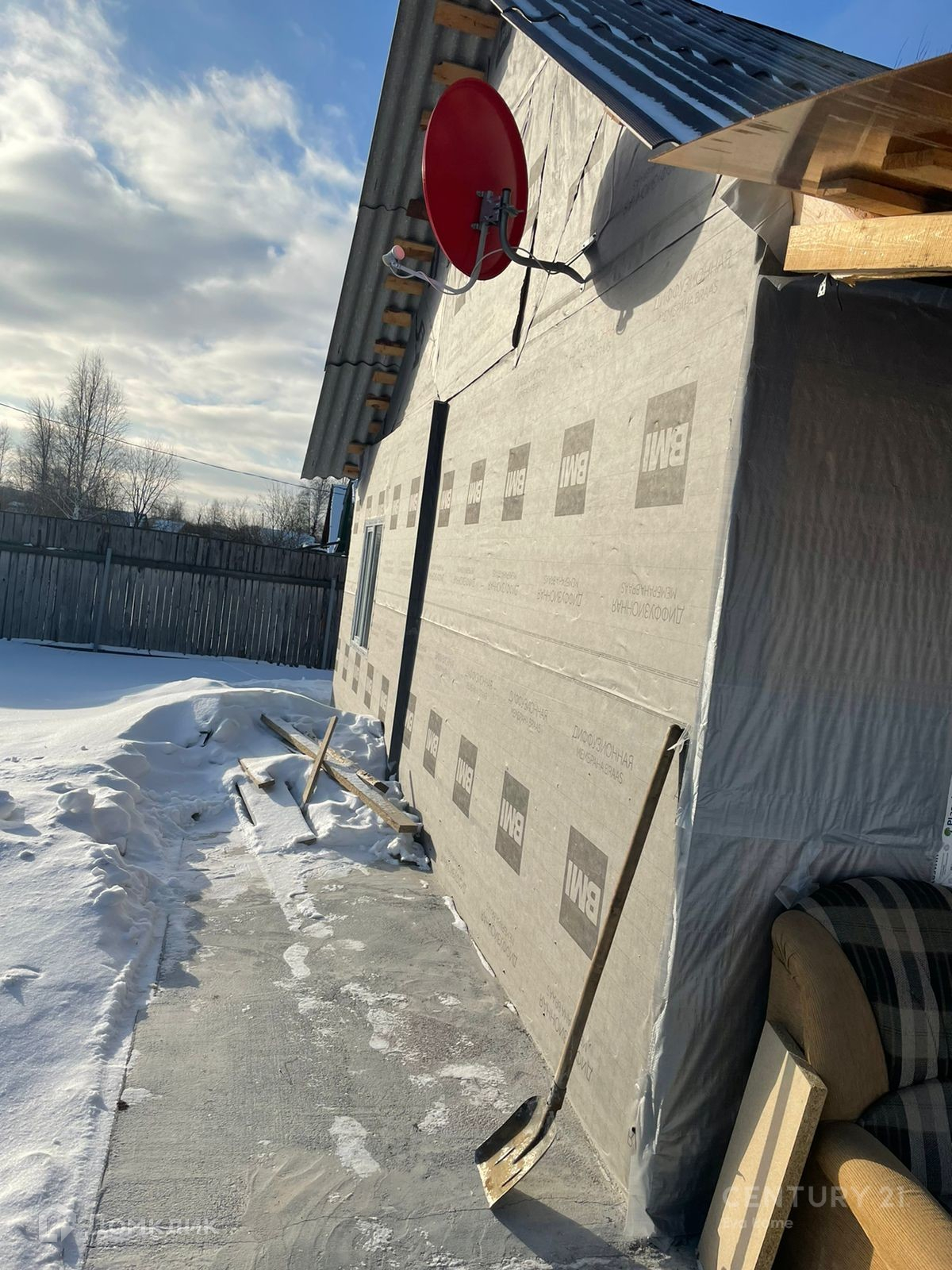 огорожен забором, с соседями граничит только с одной стороны. Дом каркасной