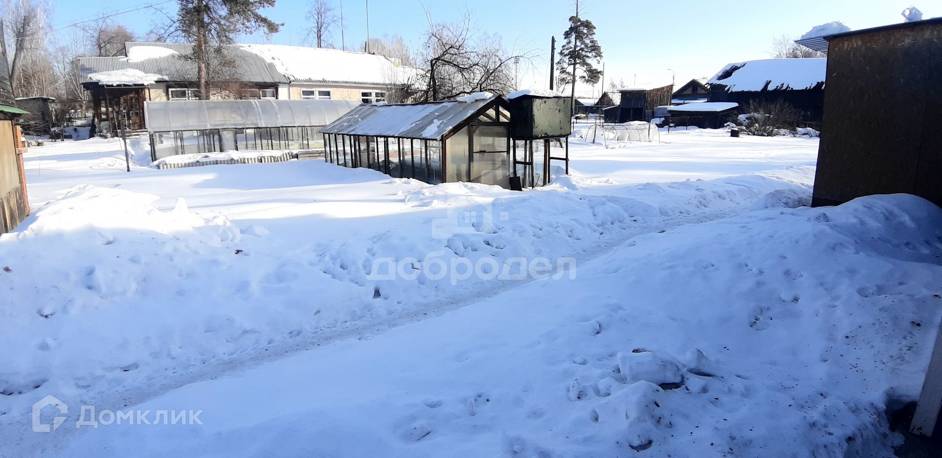В пользовании с домом небольшой земельный участок, ухоженный, растут плодово-ягодные кустарники, деревья, есть теплица, баня, навес, яма для хранения овощей.