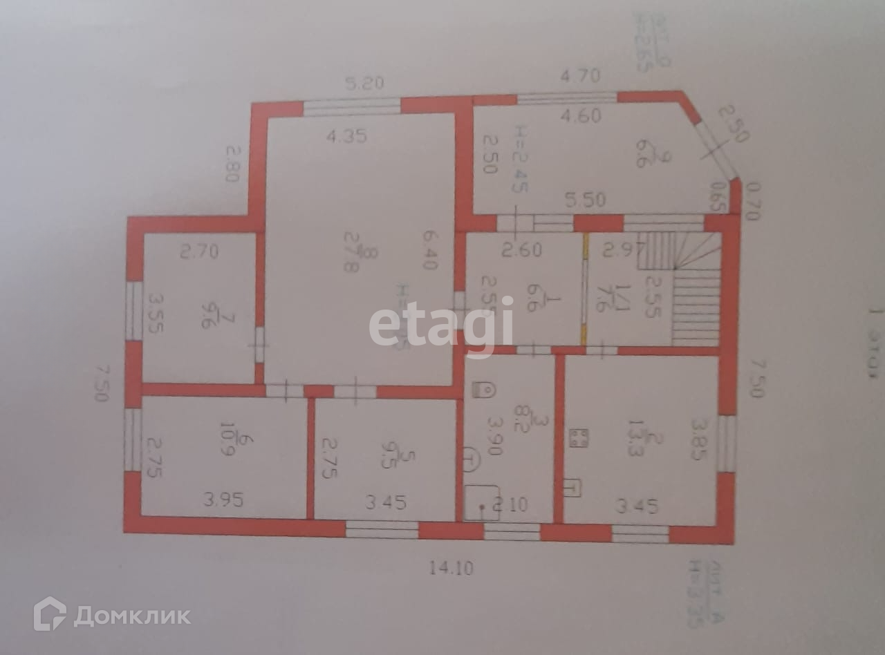 На первом этаже площадью 100 кв.м.: 4 комнаты 27,8 кв.м, 10.9 кв.м, 9.6 кв.м, 9.5 кв.м., кухня 13.3 кв.м, ванная 8.2 кв.м, коридор 7.6 кв.м., прихожая 6.6 кв.м, терраса 6.6 кв.м.