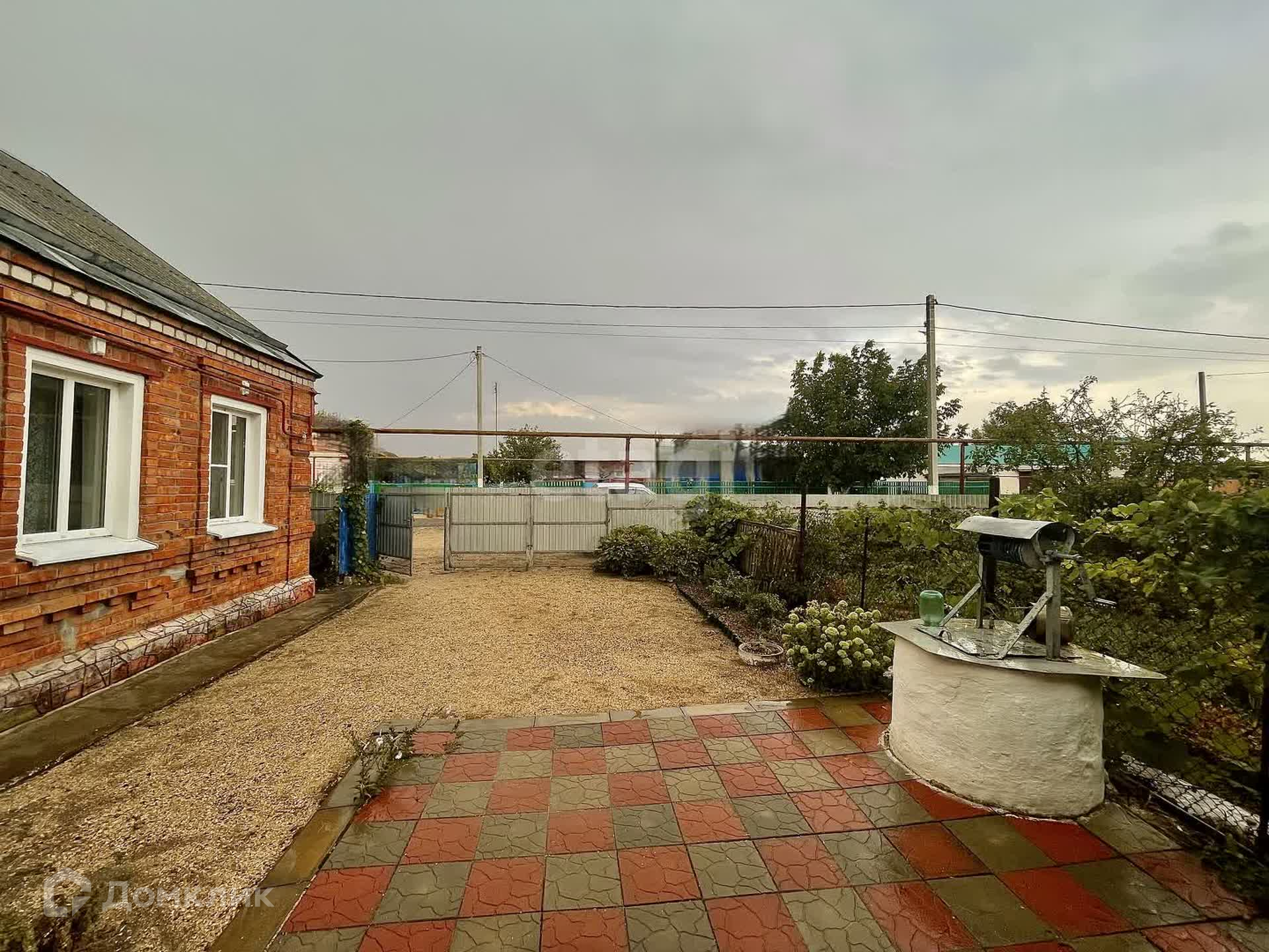 Двор ухоженный, частично в плитке, въезд отсыпан песком. На участке есть 2 сарая из самана, кирпичный погреб, уличный туалет, колодец для полива сада и огорода.