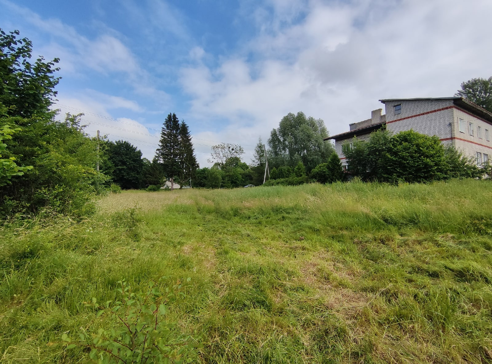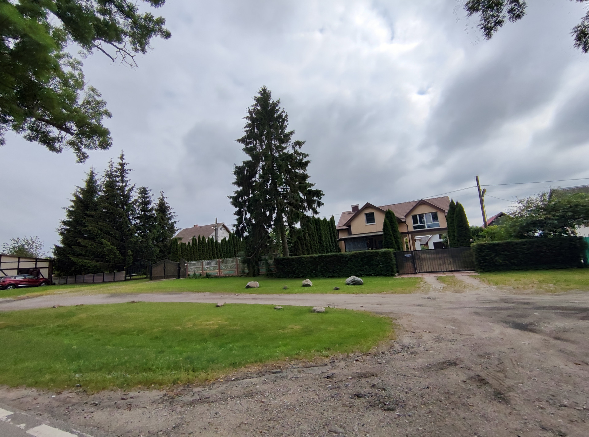 20 метров от центральной дороги, первая линия, школьный автобус (Храбровская школа), остановка автобуса №114 в 200м, магазины, кафе, ресторан, озеро.