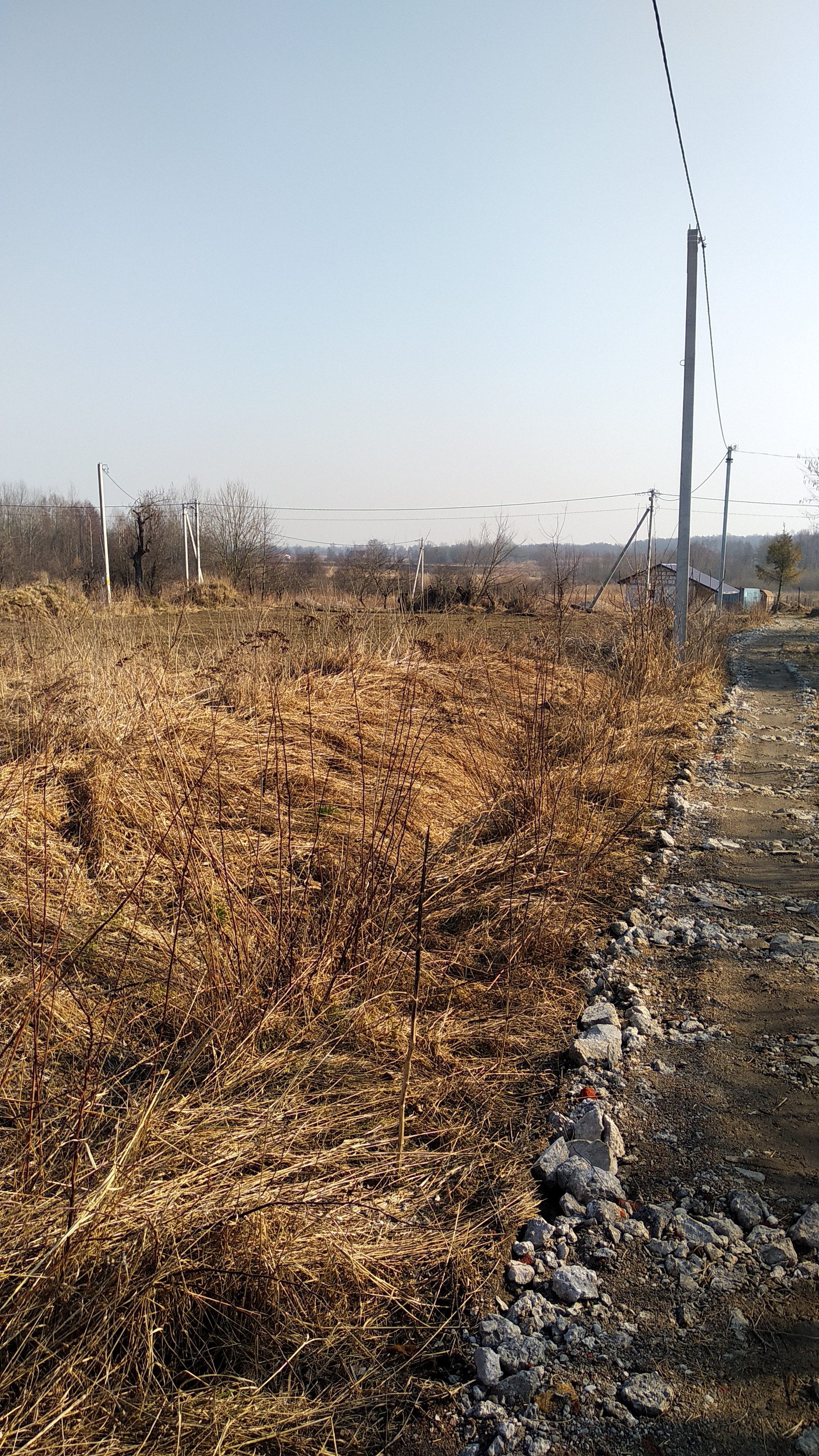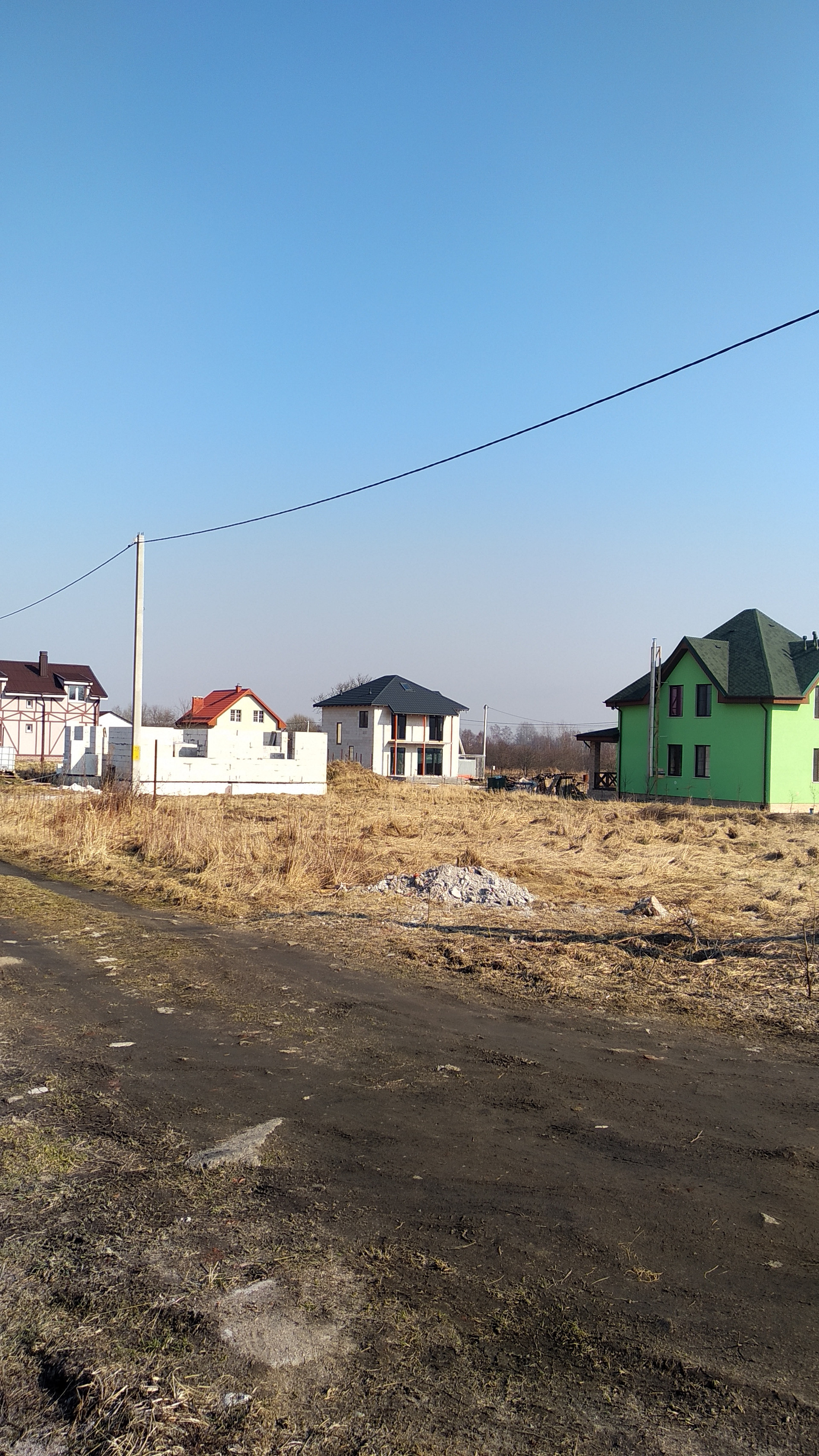 На границе участка установлены столбы с линией электропередач. Поселок газифицирован.
