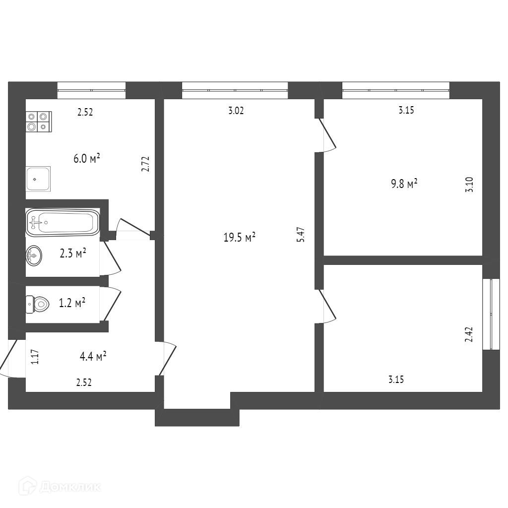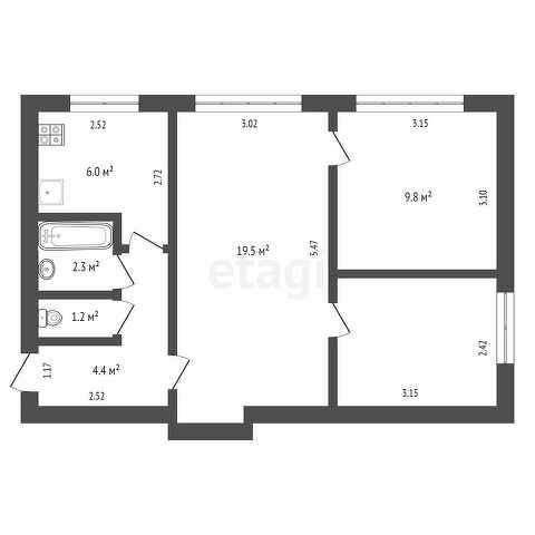 Общая площадь 48.1 м2