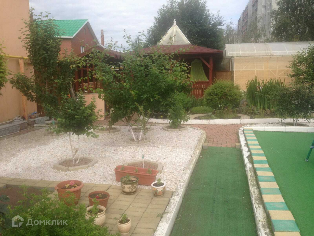 Усадьба состоит из: двухэтажного коттеджа, площадью 325 м2, гостевого двухэтажного дома 95 м2, дома-бани с мансардой 85 м2, игрового детского домика, зоны отдыха с бассейном 15 м, летней кухни с мангалом, беседкой, мастерской и гаража на 2 авто. Также оборудована детская игровая площадка. Усадьба расположена на земельном участке 15 соток. Земельный участок разработан согласно ландшафтному дизайну, украшен садовыми растениями и цветами. Много хвойный деревьев: четыре кедра с шишками, четыре голубых ели и сосны.