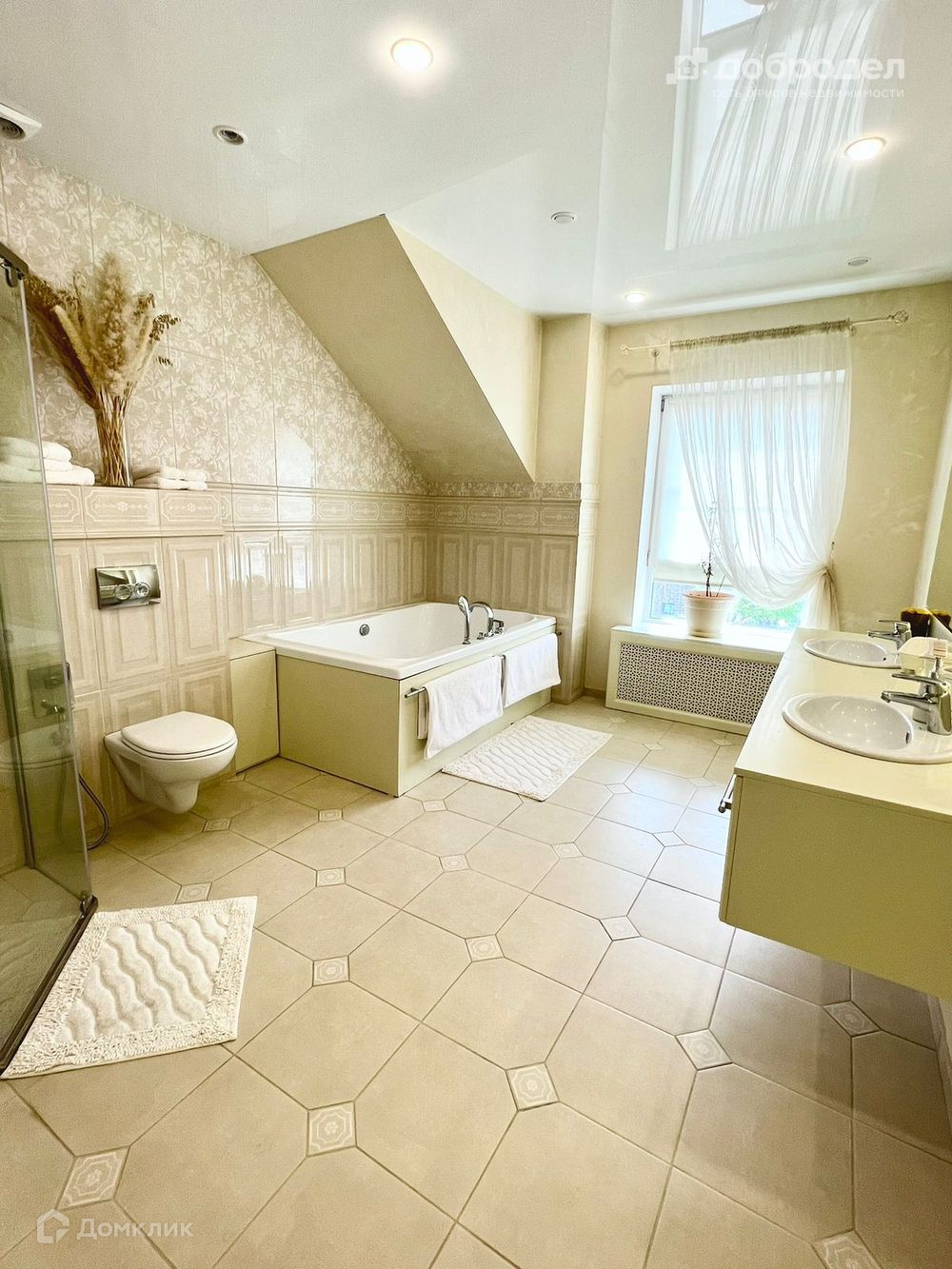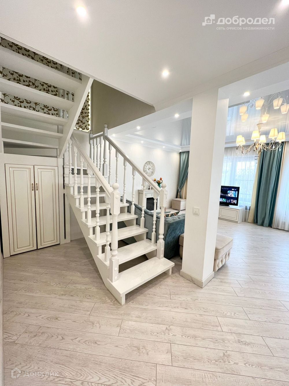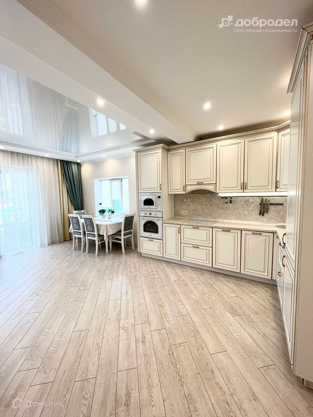 Во всех помещениях спокойный дизайн в светлых тонах, выполнен дорогостоящий ремонт по дизайн проекту в классическом стиле.